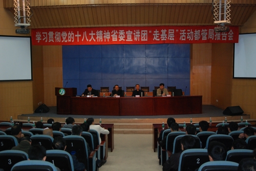 为使全局广大党员干部充分学习好、领会好、贯彻好十八大精神,根据省直机关工委和省水利厅厅直机关党委的安排部署,省委宣讲团成员、省直机关工委副书记许家勇同志专程来到我局,举行了深入学习贯彻党的十八大精神“走基层”宣讲活动。厅党组成员、机关党委书记肖帆莅临指导,局在职党员和青年职工近200人参加了报告会。报告会由局党委书记、副局长孙小铭主持。