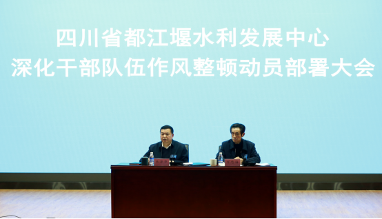 会上,中心党委副书记万忠海宣读四川省都江堰水利发展中心关于深化干部队伍作风建设专项整顿的贯彻落实意见,对都江堰灌区作风整顿工作作出部署:要求灌区广大干部职工用半年时间,重点针对“十大作风”和“五种人”表现,划分三个类别分类施策,通过宣传部署、问题剖析、整改落实和总结提升四个阶段开展工作,把作风整顿的成效推向深处、落到实处。