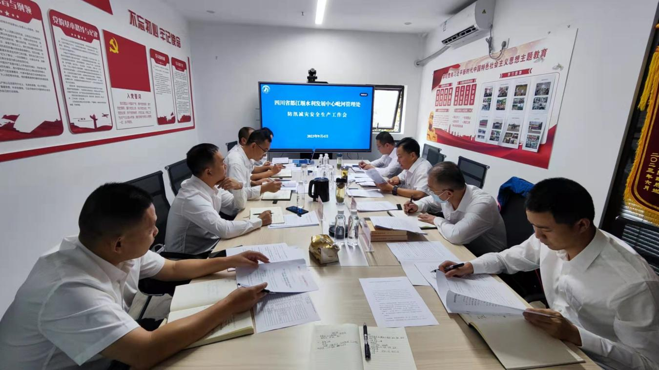 为认真贯彻落实近期中央、四川省、水利厅以及都江堰水利发展中心关于防汛减灾安全生产会议精神,全力抓好安全生产防范工作,9月4日,毗河管理处召开了防汛减灾安全生产工作会,分析研判当前防汛减灾和安全生产形势、进一步找准问题、补齐短板,坚决防范和遏制重特大安全生产事故发生。会议由处安全生产领导小组副组长张伟主持。