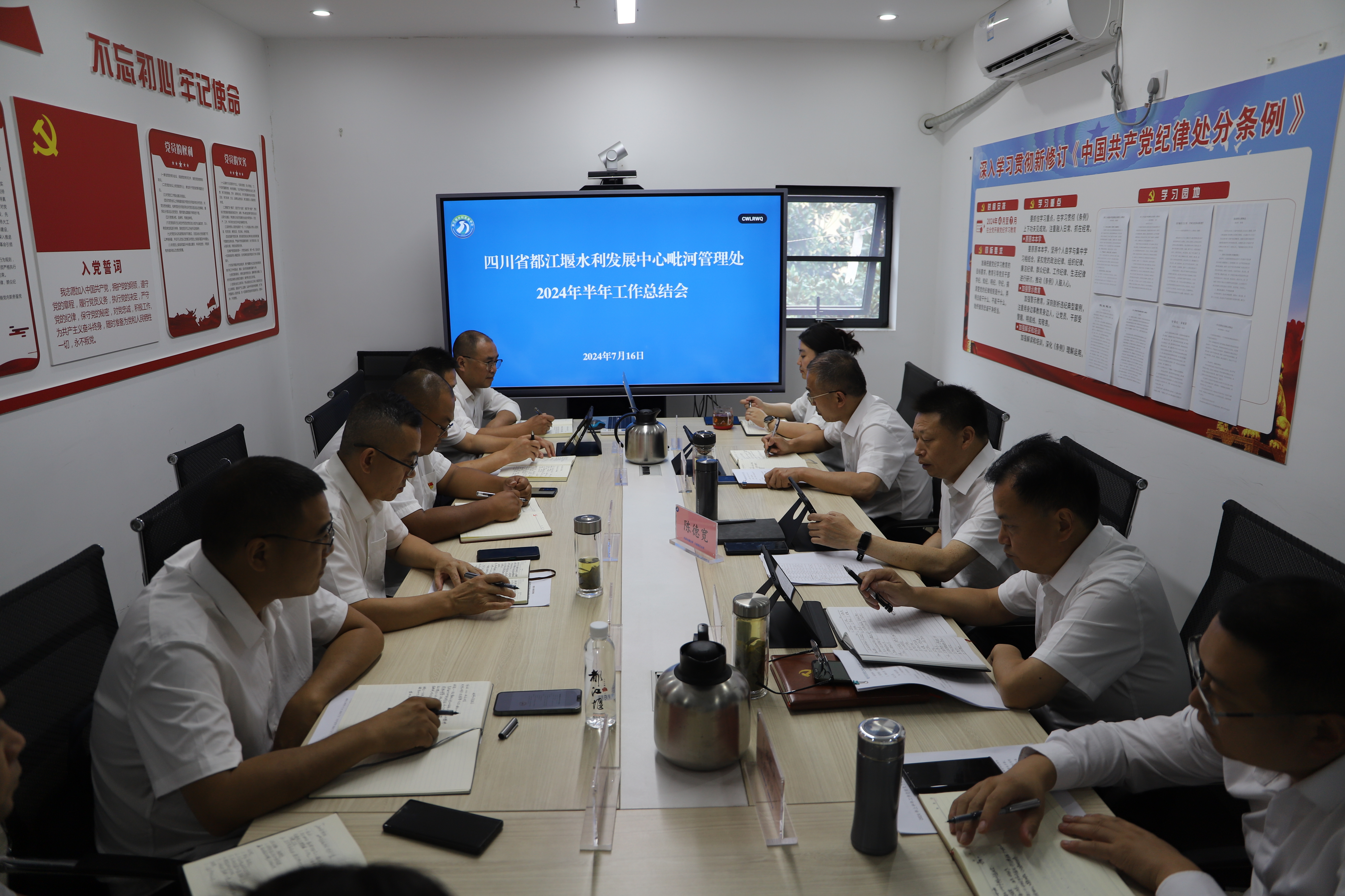 7月16日,四川省都江堰水利发展中心毗河管理处在处机关会议室召开2024年上半年工作总结会。会议传达了四川省水利厅2024年半年工作总结大会会议精神,总结上半年的各项工作成效,查找短板弱项、分析原因不足,并安排部署下半年工作、狠抓末端落实,决战决胜全年任务目标。