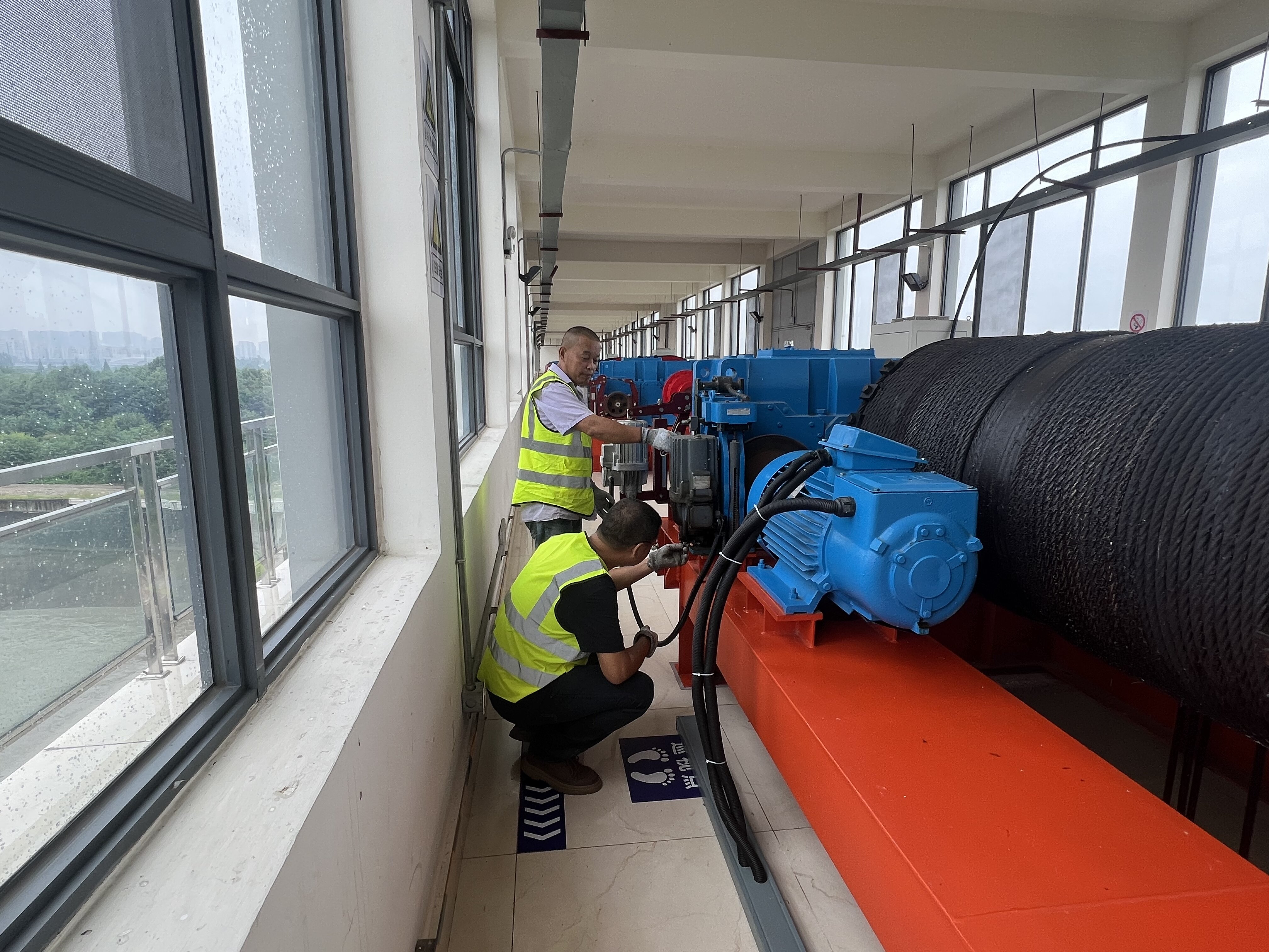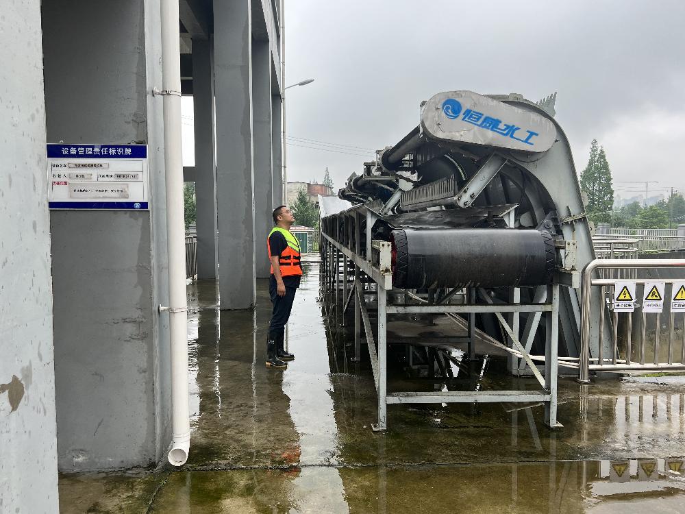 (苟家滩水利管理站工作人员检查捞渣设备)