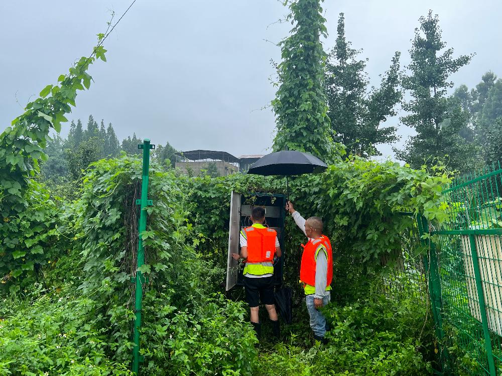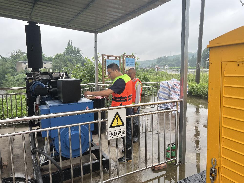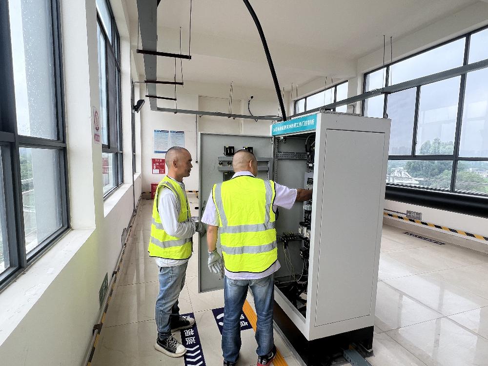 (苟家滩水利管理站工作人员检查市政电源线路及设备)