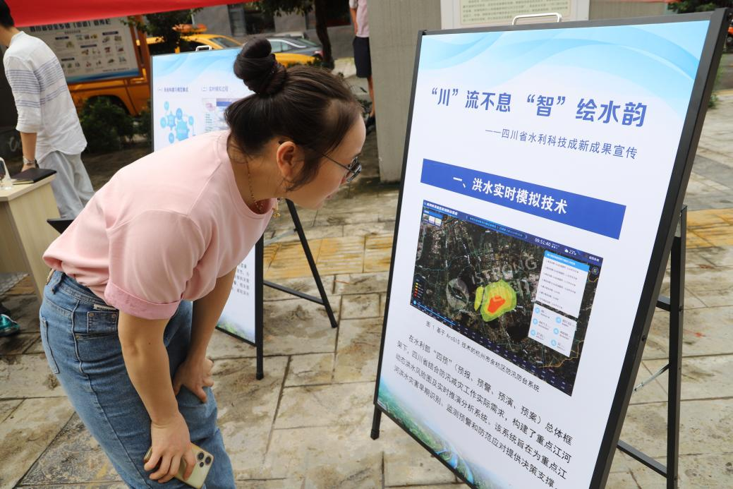(工作人员向市民群众普及四川省水利科技创新成果)
