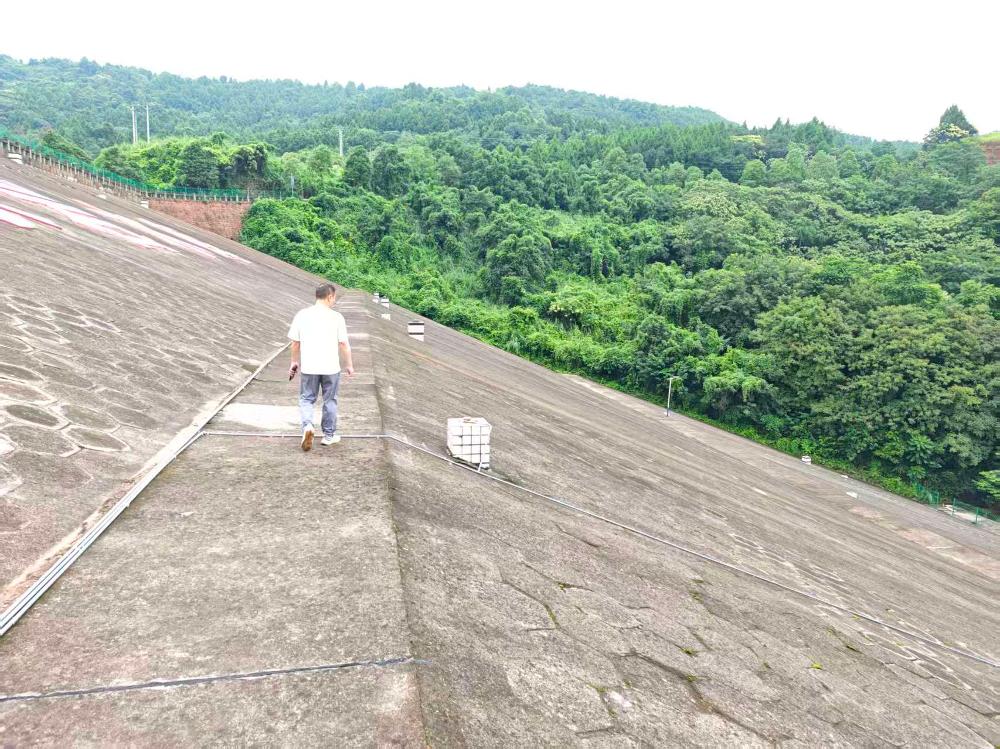 水库大坝及库面:重点核查主坝、四座副坝外观,未发现明显异常;三角堰渗漏水流稳定、水质清澈,渗漏情况正常。针对前期山洪导致的库面漂浮物较多问题,已要求加强打捞力度,确保节前恢复库面整洁;同时通知水库检测单位按时完成第三季度测量检测工作,库区安全警示标志保持完整。