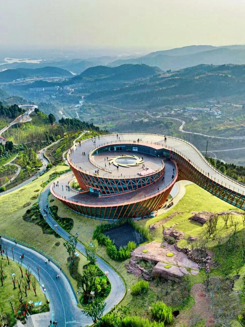 秋登云阶,探秘雾凇栈道——蜿蜒2公里的玻璃步道凌空穿林,山风卷起松涛阵阵;行至“城市之眼”丹景台,东眺沱江如金带缠峦,西瞰天府国际机场银鹰起降,北望“蜀峰468”刺破云霭。