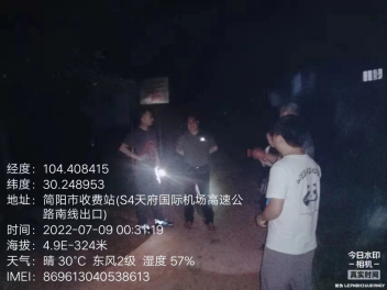 (7月8日晚,简阳市芦葭镇发生旱情,部分村社用水困难,我站工作人员赶赴现场协调抗旱放水)