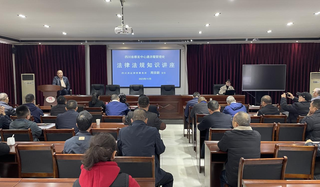 为进一步增强法律意识,提升干部职工知法、懂法、用法的能力,2023年11月20日下午,都发中心通济堰管理处专门邀请四川洪运律师事务所周崇新律师为大家进行高质量发展专题讲座。全处中层以上干部、机关全体职工参加讲座。
