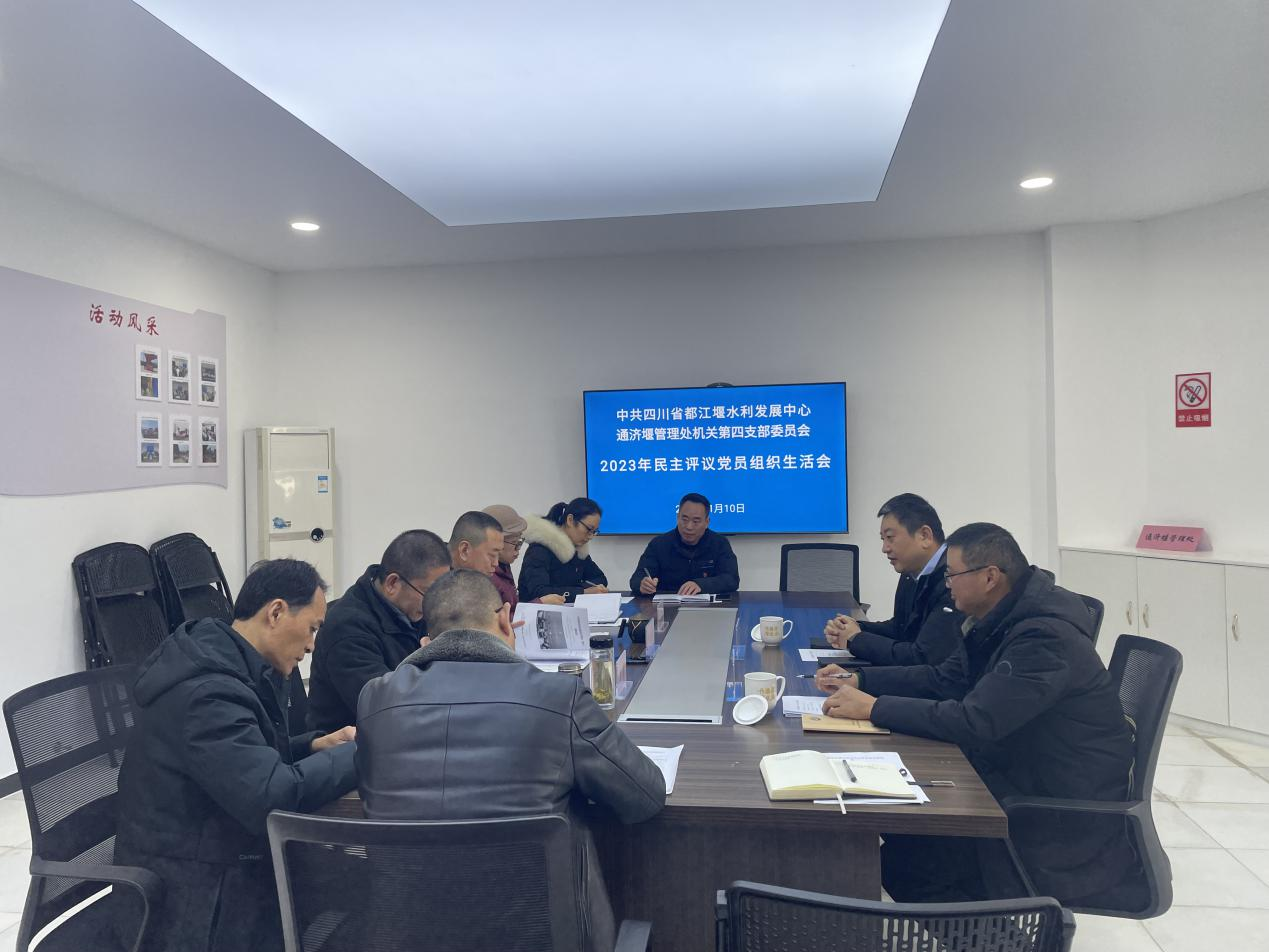 1月10日,处机关第四党支部召开2023年度组织生活会和开展民主评议党员工作,会议由支部书记黄勇主持,通济堰管理处党委委员、副处长李忠孝以普通党员身份参加、都发中心党委委员、副主任陈曜列席参加并点评讲话。