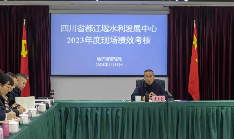 1月11日下午,都发中心党委副书记李彦富带领考核组一行21人,对通济堰管理处进行2023年度现场绩效考核。通济堰管理处领导班子成员、各科(室)站负责人参会。
