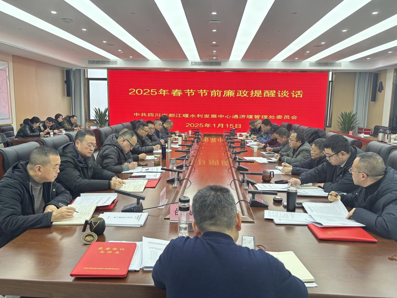 春节临近,为进一步落实全面从严治党主体责任,增强党员干部廉洁自律意识,营造风清气正的节日氛围,近日,通济堰管理处召开2025年春节节前集体廉政提醒谈话会。处党委书记、处长白文斌就严明纪律、廉洁过节进行了集体廉政谈话。