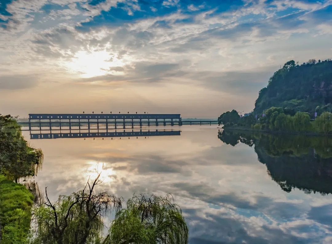巴蜀大地的“水城”新津,五河汇聚,人杰地灵,历史悠久。在水城的南边,一山、一堰、一城、三河,就这样自然而然、“其乐融融”地交汇在天地人文之中。其中,修觉山与通济堰如两颗璀璨明珠,它们的“山水情缘”在古诗文中熠熠生辉,更与新津十二景紧密相连,承载着深厚的历史文化底蕴。