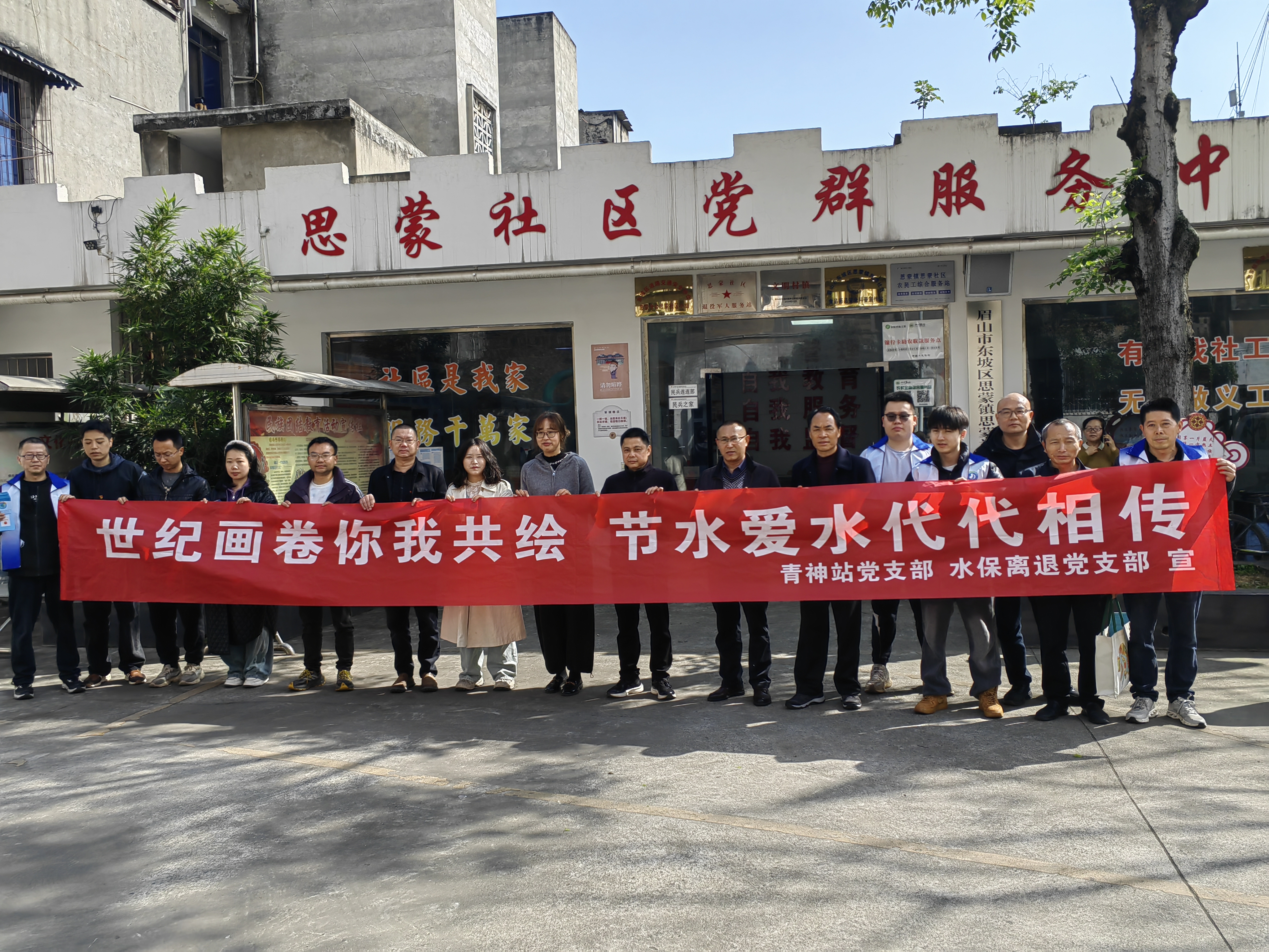 3月24日,水保离退党支部、青神站党支部将水法宣传融入主题党日。联合开展 “进社区,宣传水法律法规”主题党日活动,充分发挥党员先锋模范作用,在东坡区思蒙镇社区开展面对面宣传,普及水法知识、讲解节水技巧,切实打通水法宣传 “最后一公里”。