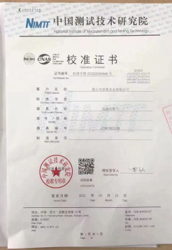 3月18日,在青神站全程监督和派普水业公司的配合支持下,中国测试技术研究院专业技术人员按照校检方案开展了派普水业用水国控计量设施(电磁流量计)的校检。经过认真查看、记录、比较、分析、测试国控计量设施(电磁流量计)和校检仪器超声波流量计现场数据以及水塔内计量设备等,检测显示国控计量设施(电磁流量计)流量为365.9m3/h,标准流量应为360.5m3/h,数据对比一致(误差率1.5%,在容许范围内)。3月23日中国测试技术研究院出具了校准证书。自2022年4月份起,派普水业公司工业用水已正式运用国控计量设施计量数据作为水费和水资源税计费依据。