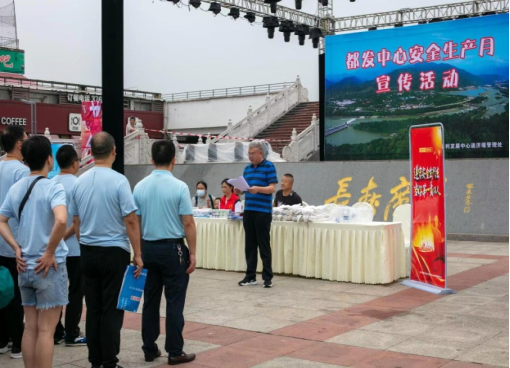 活动中安保小组、宣传小组、后勤小组、应急小组各司其职,各负其责,参加群众鱼贯而入、往来有序,工作人员按部就班、秩序井然,宣传活动有条不紊地进行。活动形式多样、丰富多彩。重点传了习总书记关于安全生的重要论述、《新安全生产法》安全生产十五条措施、安全生产人人有责等。悬挂横幅1幅 、设置背景墙1面、安全知识宣传咨询点5个、发放安全知识宣传彩页近200幅、都发中心文创产品(矿泉水)、手提袋、牙膏等各类小礼品600余份。多种形式营造了浓厚的“安全生产”宣传氛围。