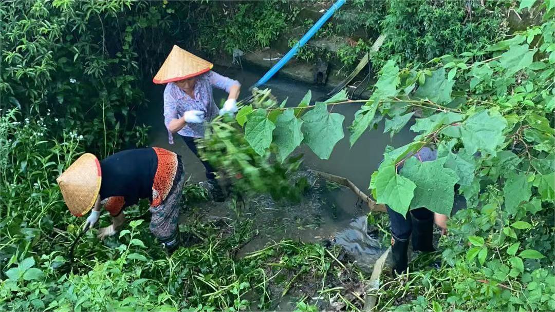 在清理现场,工作人员各司其职,用铲子、镰刀、锄头等各种工具,仔细清理渠道内水草、杂草、石块等堵塞物。尽管周末夏日炎炎,工作人员都大汗淋漓,但是大家都乐观热情,齐心协力,目标明确地投入到清理工作中,展现了新时代水利人忠诚、干净、求实、担当的精神。