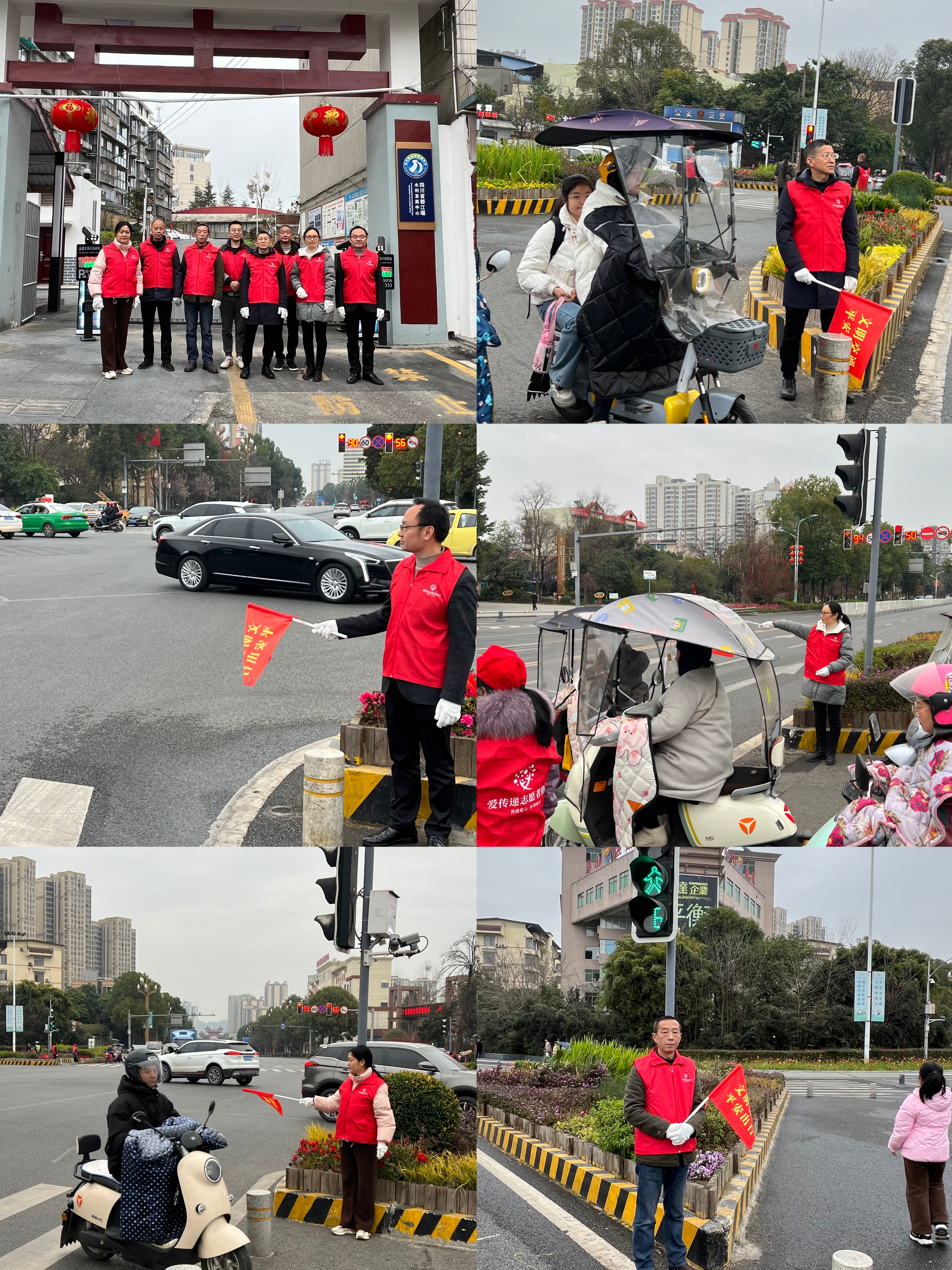 当天下午下班后,彭山水利管理站党支部全体党员集体来到彭山区彭祖大道与迎宾大道交汇的十字路口,化身为交通劝解员,在马路口开展志愿服务。他们身穿鲜红的志愿者马甲,手持劝导旗,耐心引导市民遵守交通规则,安全过马路。同时积极向过往的群众宣传交通安全知识,倡导文明出行,让市民在出行中感受到党员们的温暖与关爱。