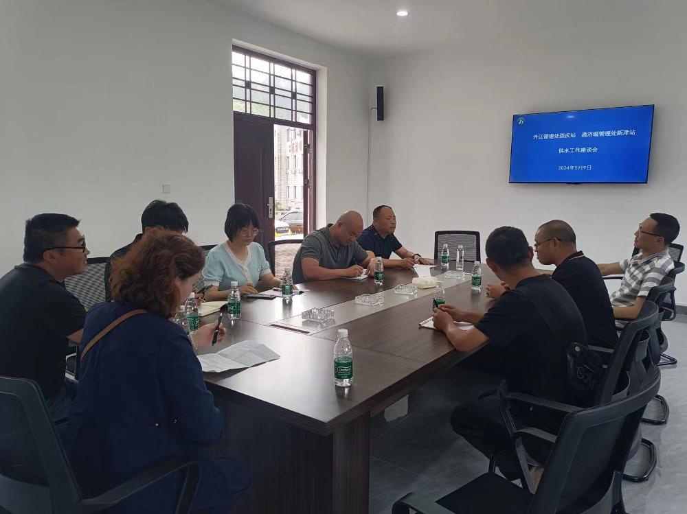 为加强水资源管理,规范水资源调度,进一步节约集约用水。5月9日,通济堰管理处新津水利管理站与外江管理处崇庆水利管理站在新津水利管理站会议室召开供水工作座谈会,新津水利管理站站长刘洪刚主持会议,外江管理处供水科科长黄彬、崇庆水利管理站站长余天建、通济堰管理处供水科科长何勇参加座谈。