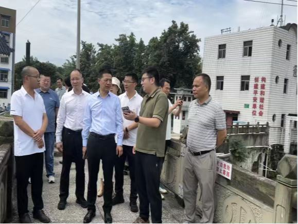 7月11日上午,成都市政协副主席梁伟一行来到世界灌溉工程遗产通济堰渠首—新津水利管理站,就岷江生态环境保护与综合利用工作进行调研,眉山市政协参加调研。新津区政协党组书记、主席左斌,党组成员、副主席高翔陪同。