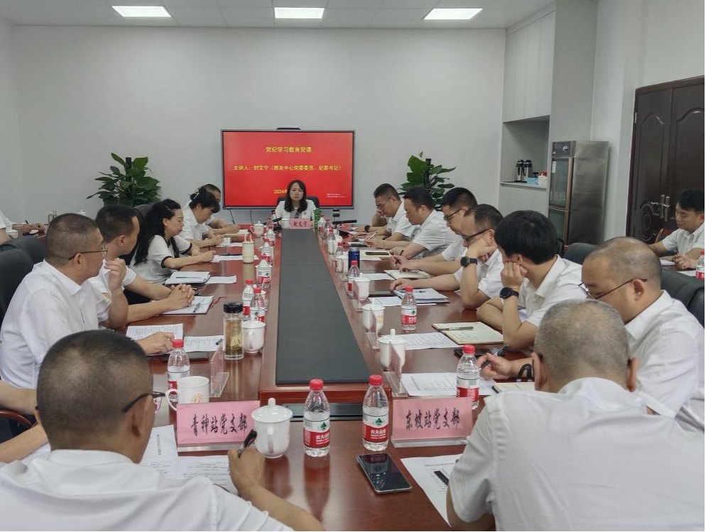 为深入学习贯彻习近平新时代中国特色社会主义思想,推动党纪学习教育走深走实,进一步把通济堰管理处广大干部职工的思想和行动统一到厅党组和都发中心党委的决策部署上来,2024年6月7日,都发中心党委委员、纪委书记封艾宁赴通济堰管理处,讲授题为《深入开展党纪学习教育,为灌区高质量发展提供坚强纪律保障》的党课,教育引导广大党员干部把学习运用好党的创新理论、开展好党纪学习教育作为重要政治任务,持续增强“四个意识”,坚定“四个自信”、做到“两个维护”,在四川水利高质量发展和都江堰灌区“榜样”建设新征程中团结奋斗、建功立业。
