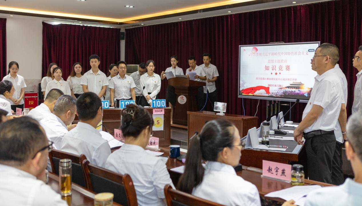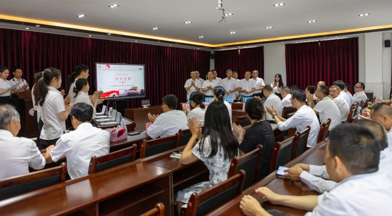 为深入学习宣传贯彻党的二十大精神,不断推动学习贯彻习近平新时代中国特色社会主义思想主题教育走深走实,在管理处营造“以赛促学、以学促思、以学促行”的浓厚学习氛围。6月29日,通济堰管理处成功举办“用党的思想理论武装头脑,携手共促灌区高质量发展”主题教育知识竞赛。来自管理处8个基层党支部的16名在职党员,组成8支代表队参加了比赛,全体领导班子、个别党员代表和积极分子到场观摩学习。