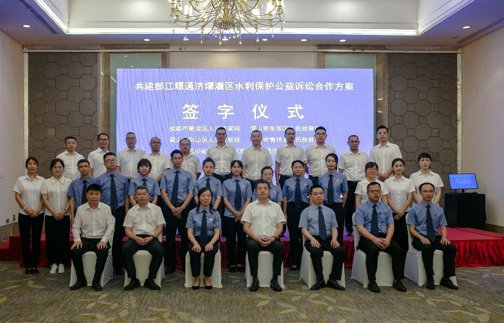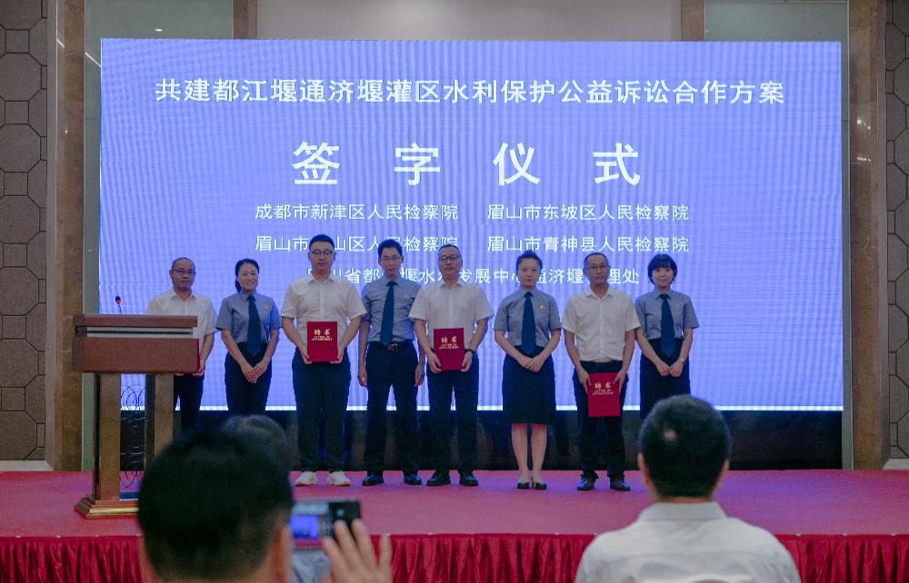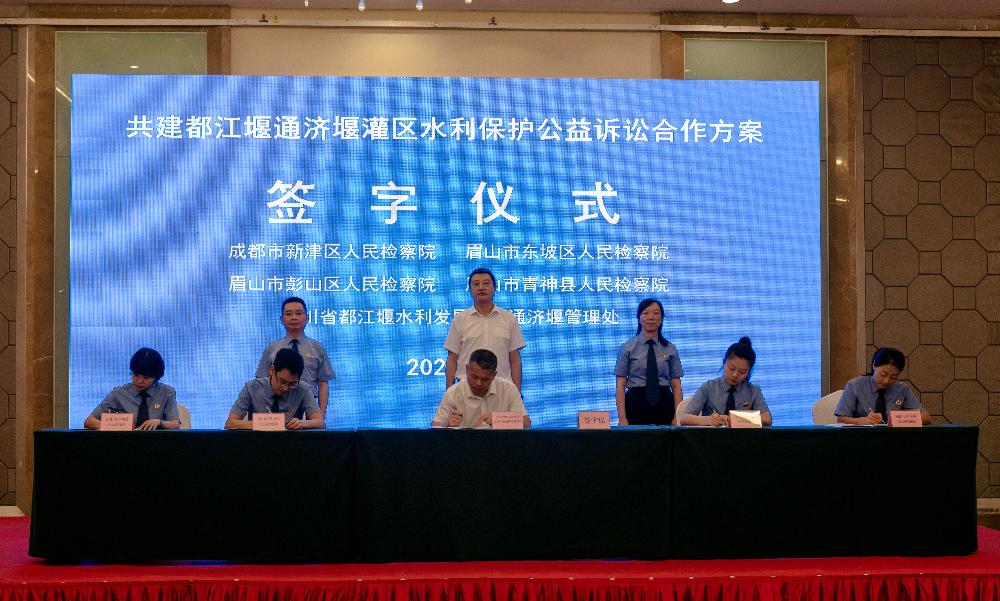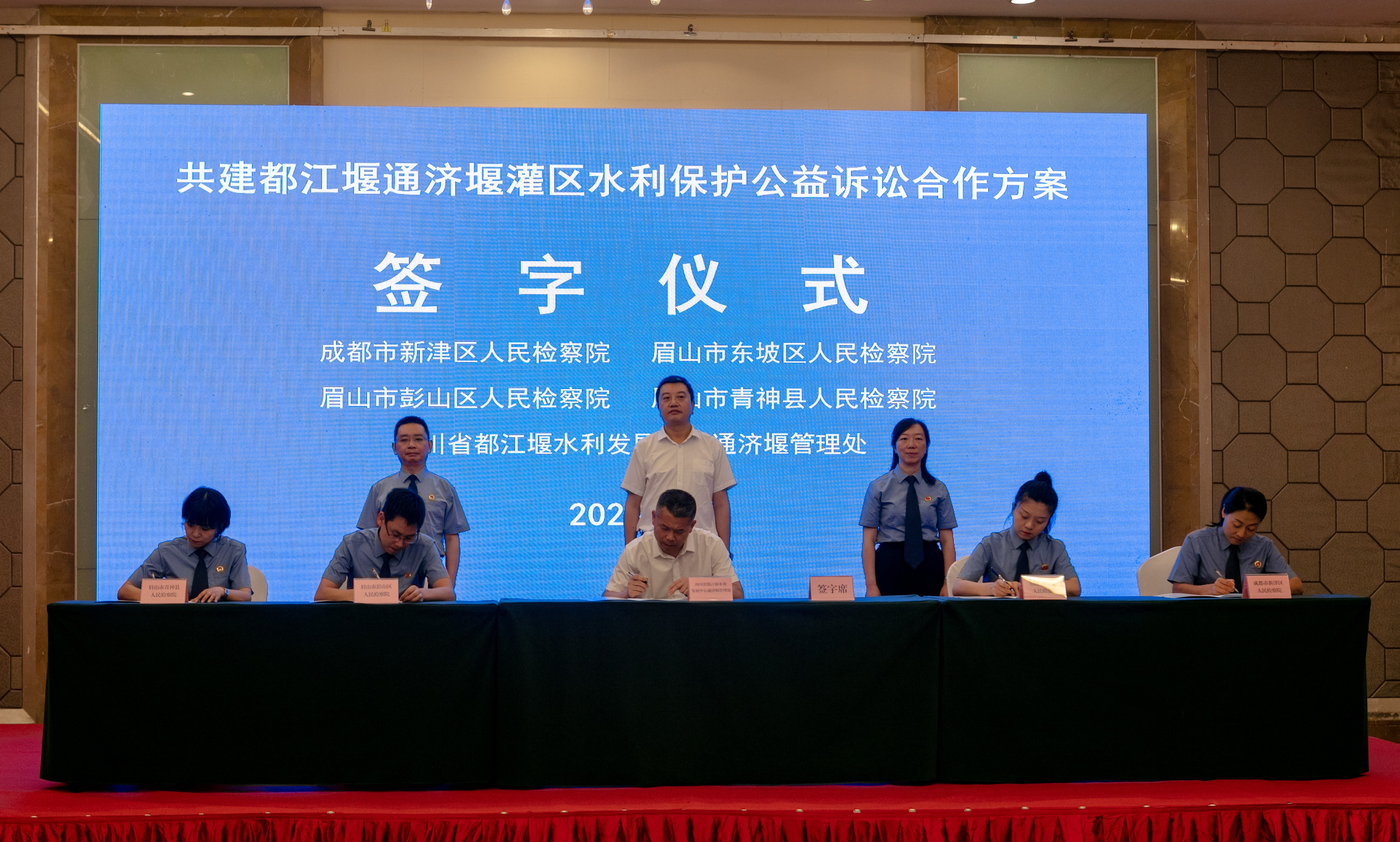 在省水利厅与省检察院共同签署的《关于共同建立都江堰灌区水利保护公益诉讼示范区的框架协议》下, 管理处与灌区内成都市新津区、眉山市东坡区、彭山区、青神县人民检察院,签订了《共建通济堰灌区水利保护公益诉讼合作方案》,构建起“检察长+水利工程管理单位”合作机制,为共建法治灌区,共筑生态灌区法治屏障迈出了坚定的步伐。