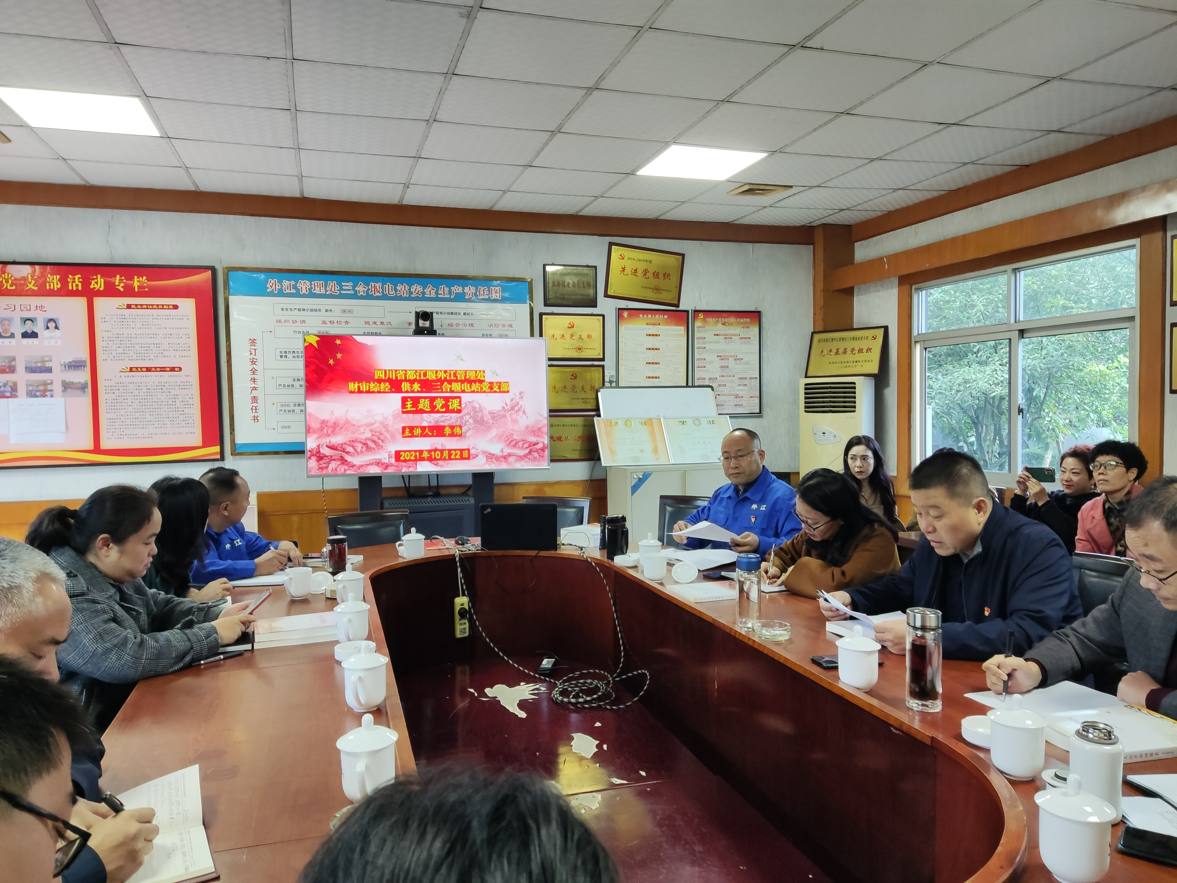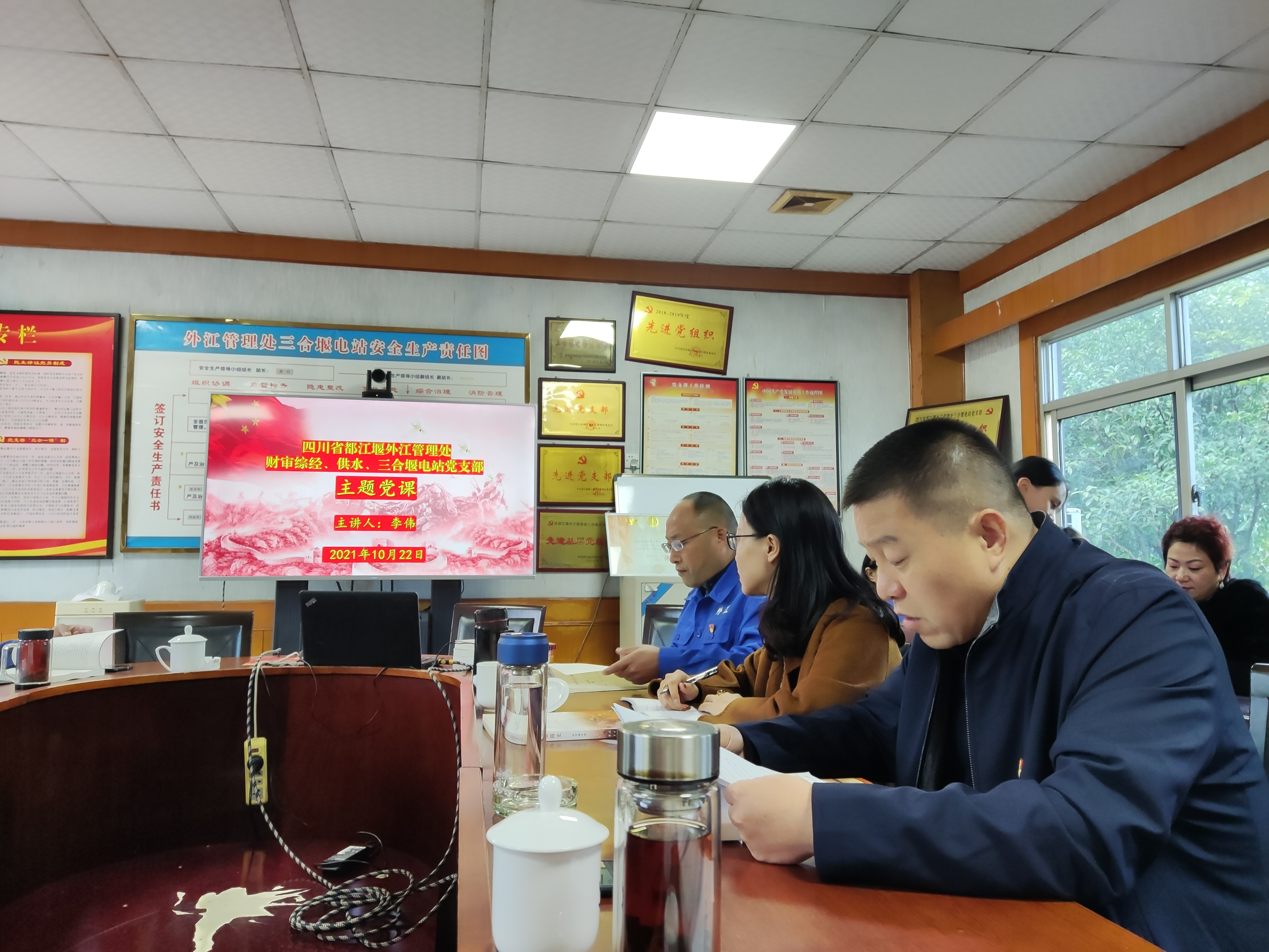2021年10月22日,财审综经、供水、三合堰电站党支部在三合堰电站党员活动室开展主题党课教育活动。