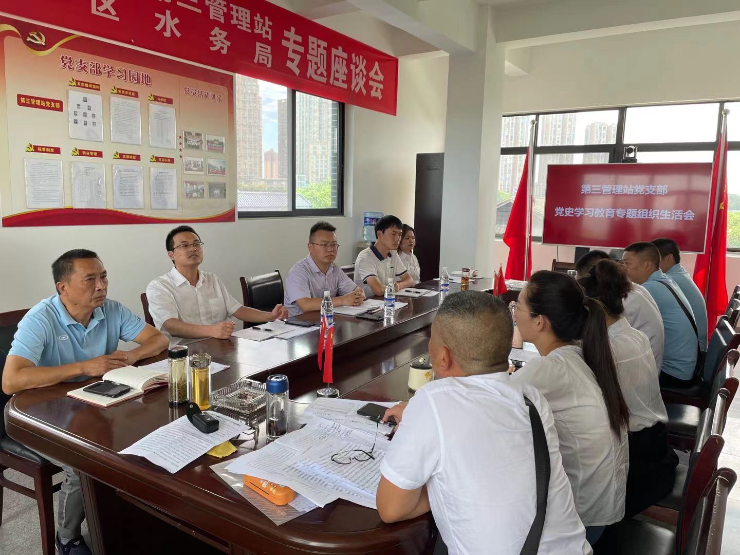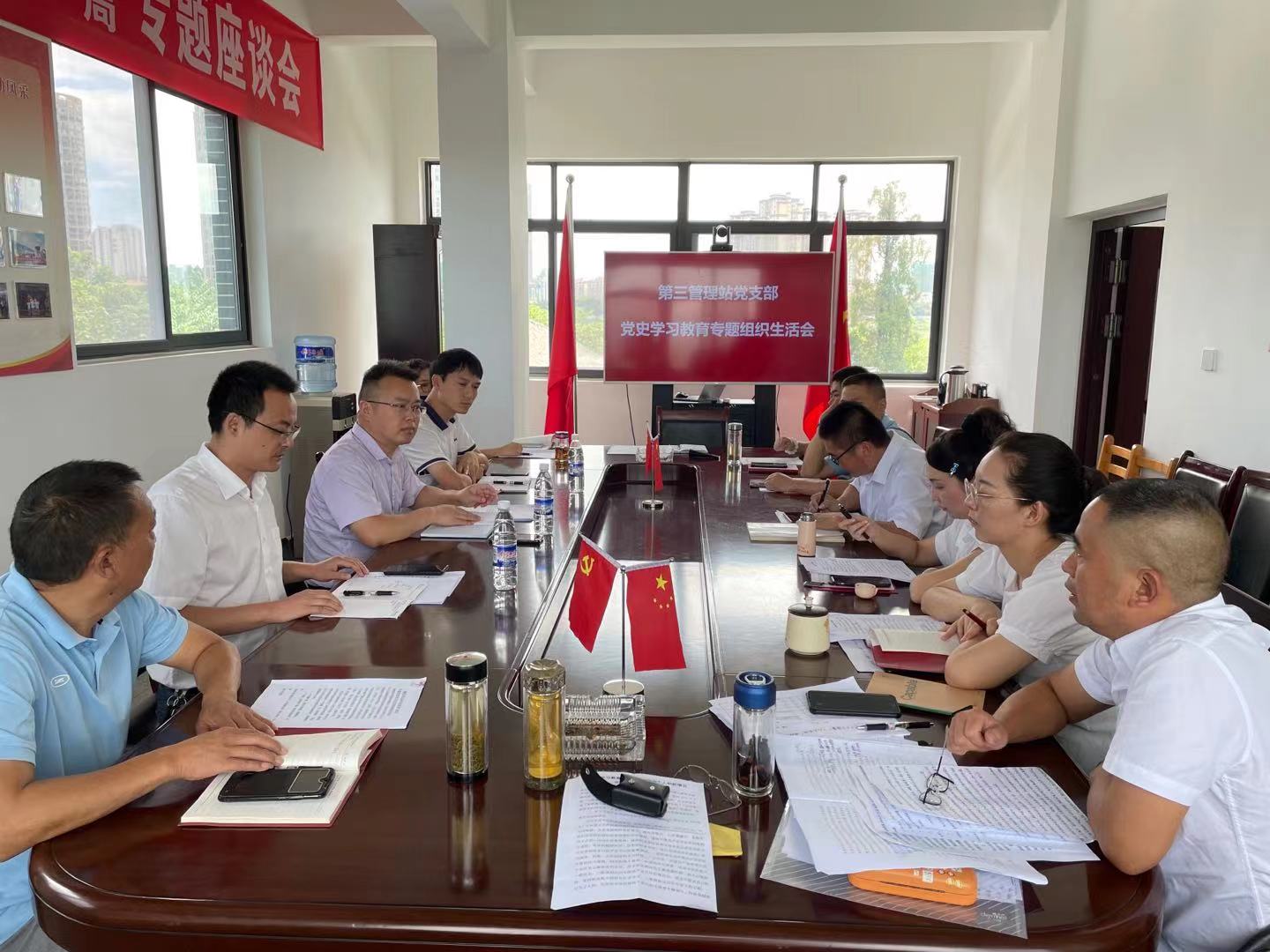 按照党史学习教育工作安排,结合近期水利厅郭亨孝厅长在厅机关职工大会的讲话精神及外江管理处职工大会要求,为进一步提振全站干部职工的精气神、推进作风整顿走深走实,2021年8月13日,第三管理站党支部召开了党史学习教育专题组织生活会。三站全体党员参加会议,处党委委员、总工程师胡其德到会指导。
