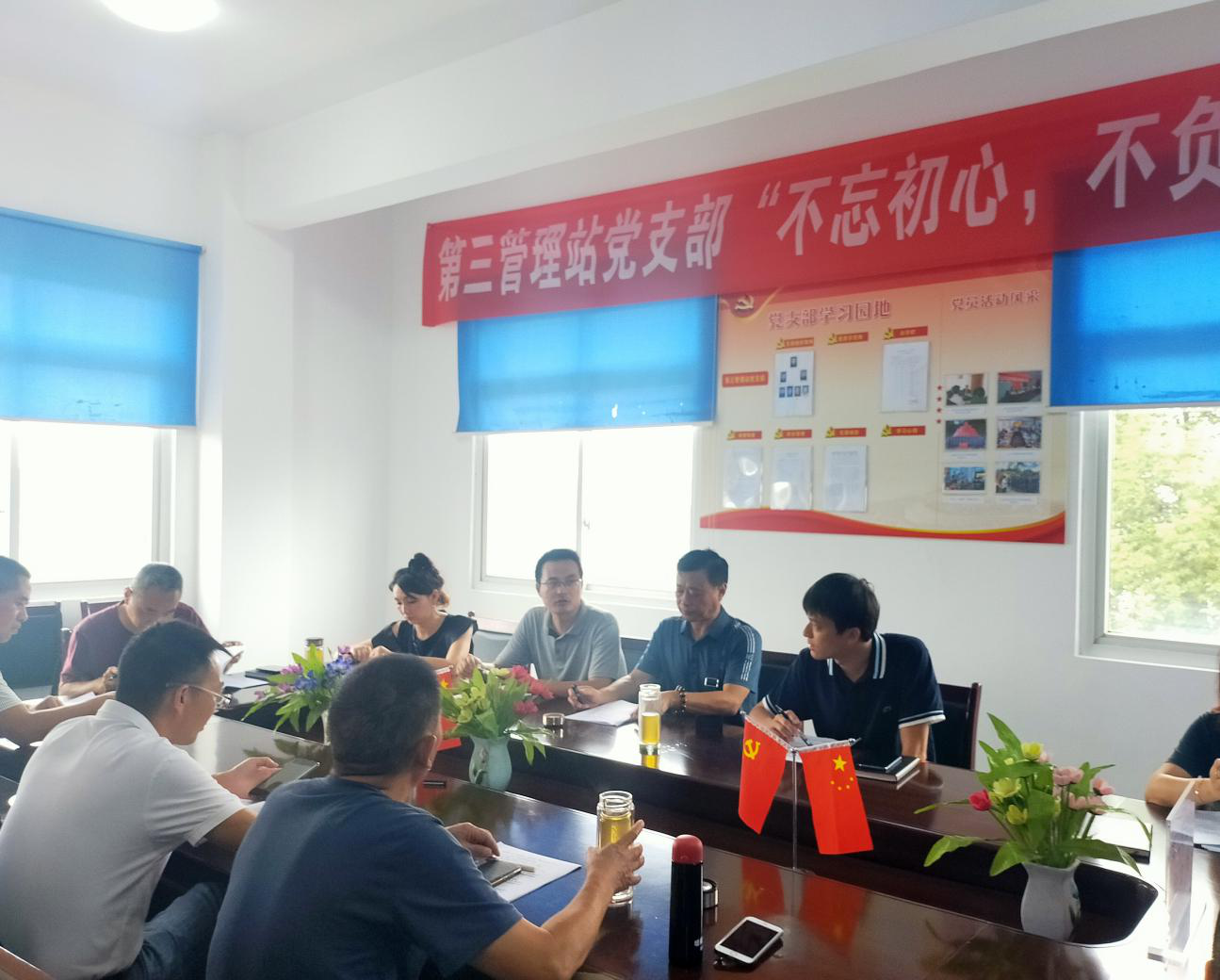 根据处党委“不忘初心、不负韶华”主题党日活动方案要求,第三管理站党支部于7月14日开展了主题党日活动,活动以讲党课和赴爱国主义教育基地现场学习相结合的方式开展。
