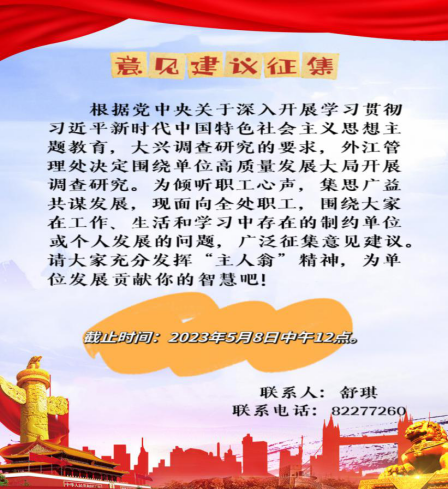 坚持问题导向,增强问题意识,倾听干部职工的心声和诉求,才能做到重心下移、力量下沉,真正把调查研究转化为推动工作的过程。调研前期,外江管理处面向全处干部职工,围绕工作、生活和学习中存在的制约单位和个人发展的问题,开展了第一轮意见建议征集,共征集到150余名职工17类200余个具体问题建议,为调研工作找准了方向。