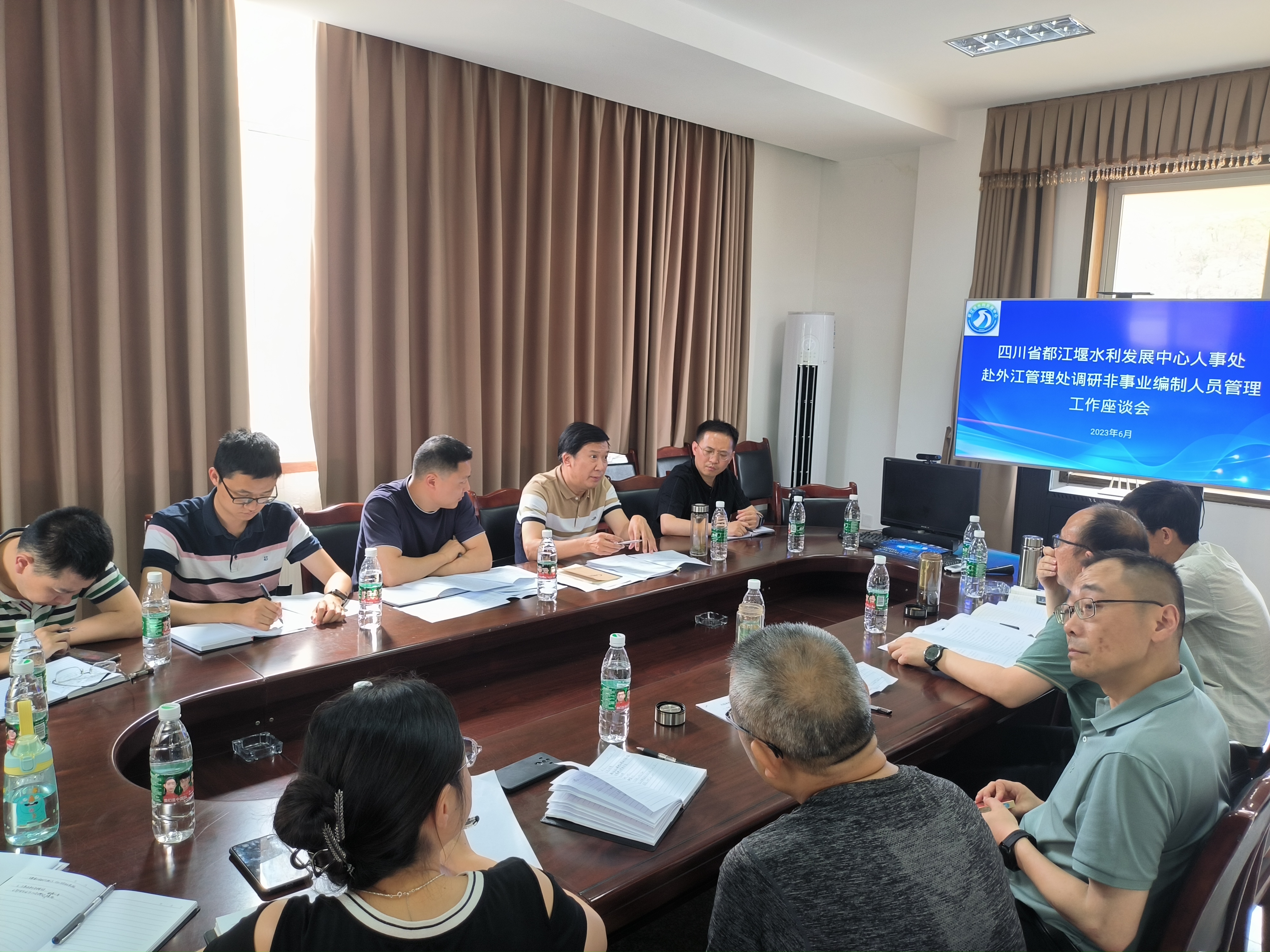 按照学习贯彻习近平新时代中国特色社会主义思想主题教育的要求,为规范非事业编制人员管理,提高劳动用工质效,防范化解风险,6月1日,都江堰水利发展中心人事处副处长刘强一行来到外江管理处,调研编制外聘用人员管理情况。