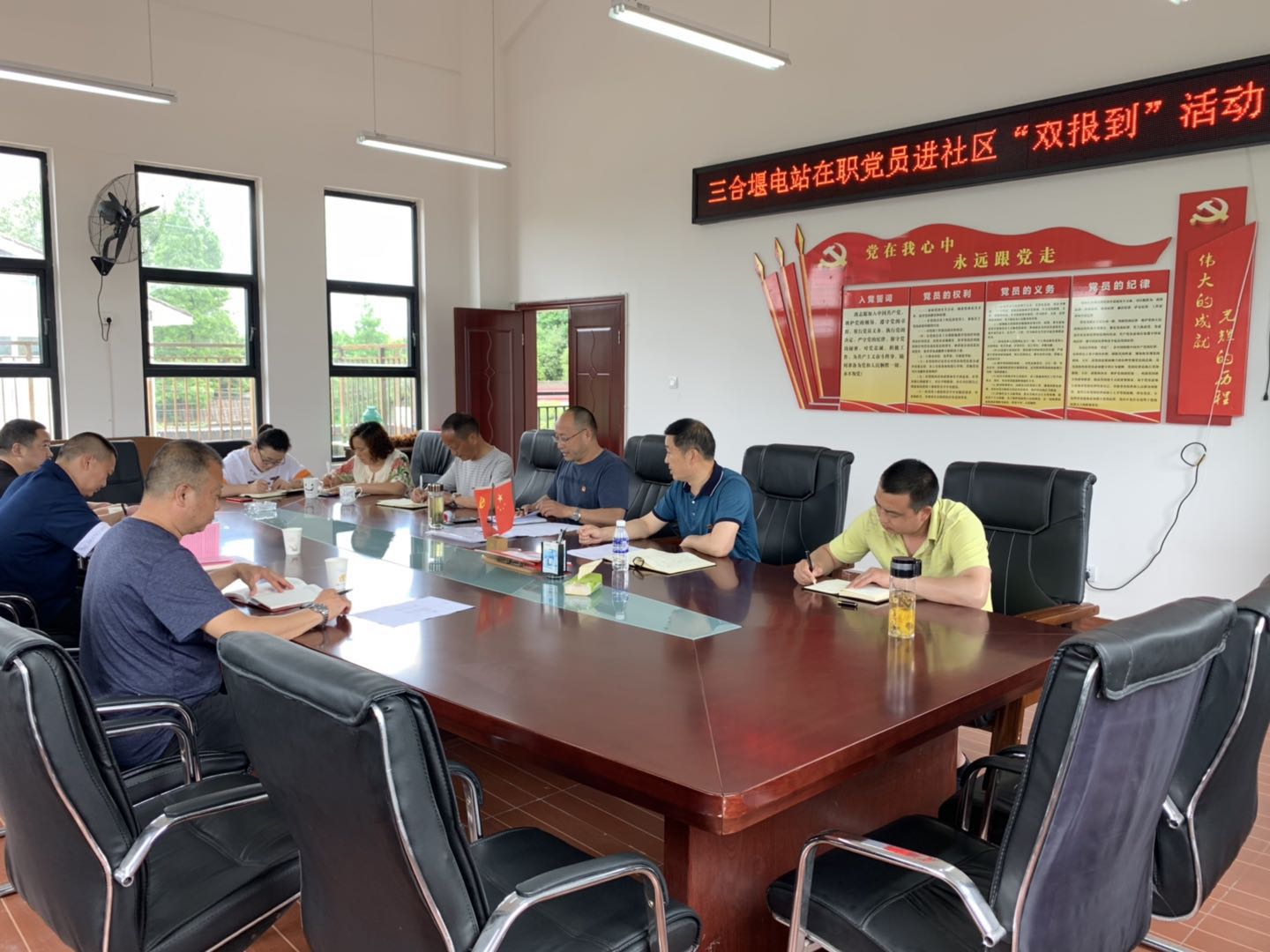 活动中,三合堰村党总支书记张建昌、副书记王建讲述了新冠肺炎疫情防控工作中的社区党员干部和志愿者的感人事迹。随后,张建昌围绕疫控工作中“制度优势、一切以人民为中心、集中力量办大事”等内容讲党课。黄均围绕“只有在中国共产党领导下才能取得疫情防控的最终胜利”为内容讲党课,要求全体党员树牢“四个意识”,坚定“四个自信”,坚决做到“两个维护”。此次活动,电站支部还开展了“走基层”“双报到”工作,双方支部围绕“走基层、转作风、谋发展”,对三合堰电站自供区企业环保工作开展情况互通有无。双方达成共识,将继续开展以党建工作引领自供区企业的环保工作。会后,双方支部到部分企业开展环保、安全检查。