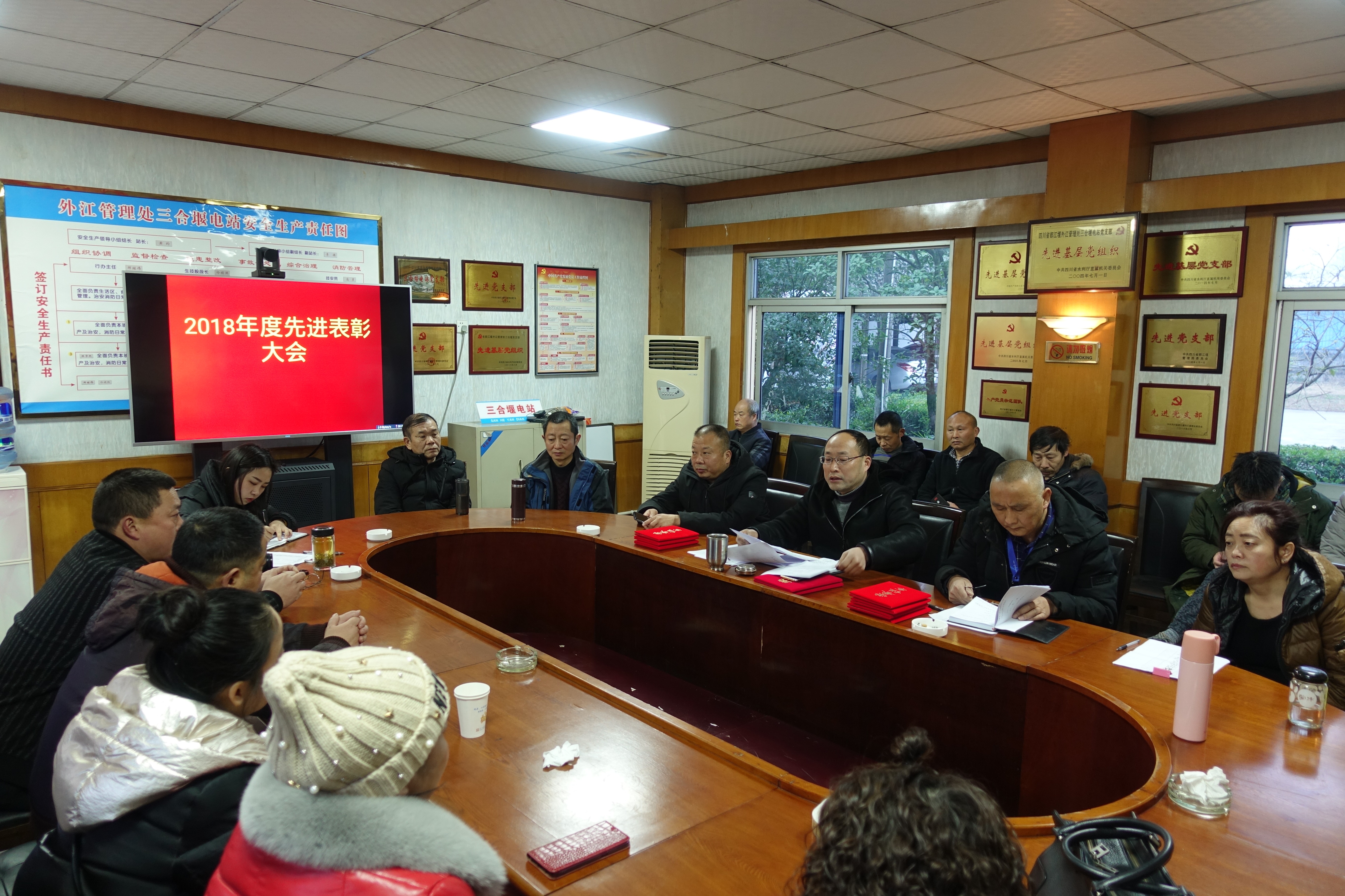 上午9时,三合堰电站站长兼合江公司董事长黄均主持“2018年度先进表彰大会”。会上,黄均宣读了受表彰的先进人员及先进班组名单并颁发奖状,号召全体职工以先进为榜样,以建设“四个外江”为目标,着力打造“责任三电”,全力以赴投入2019年的生产工作中。