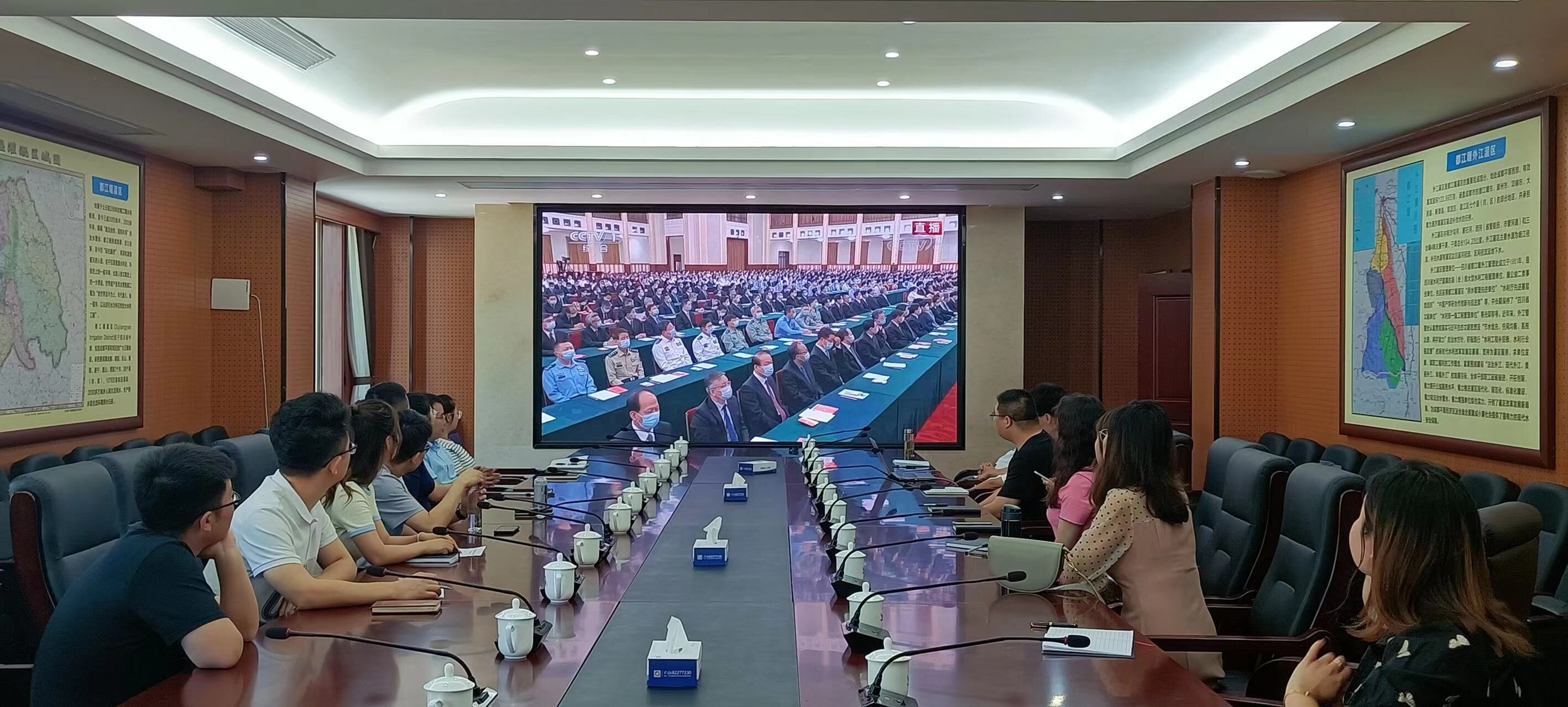 处机关团支部青年团员在机关四楼会议室,其他团支部在所在管理站认真收看了大会实况。(办公室 舒琪)