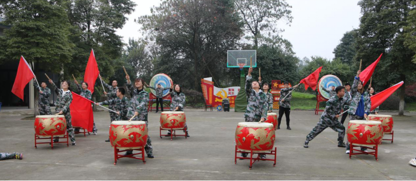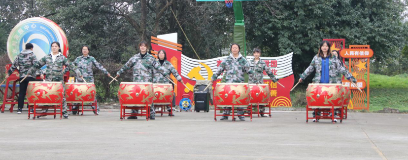冬季已至,气温骤降,三合堰电站的篮球场上,一群青春洋溢的年轻人正在认真排练。她们英姿飒爽,敲打鼓声雷雷如奏响胜利的凯歌;他们神采飞扬,舞动红旗飘飘如东升闪亮的朝阳,他们让这球场逐渐变得热烈而激昂。