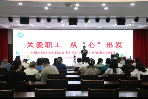 舟至中流催帆竞,击辑勇进破浪行。在主题教育开展如火如荼之时,在四川水利高质量发展“三年上台阶”之际,为着力提高我处干部职工心理健康素质,提升职工情绪与压力管控能力,引导大家科学地进行心理调节,有效缓解心理压力,形成“自尊自信、理性平和、积极向上”的健康心态和工作氛围,将危机干预转化为关爱先机。7月13日下午,外江管理处特邀心理咨询师黄静在机关六楼会议室开展“关爱职工 从心出发”为主题的心理讲座。