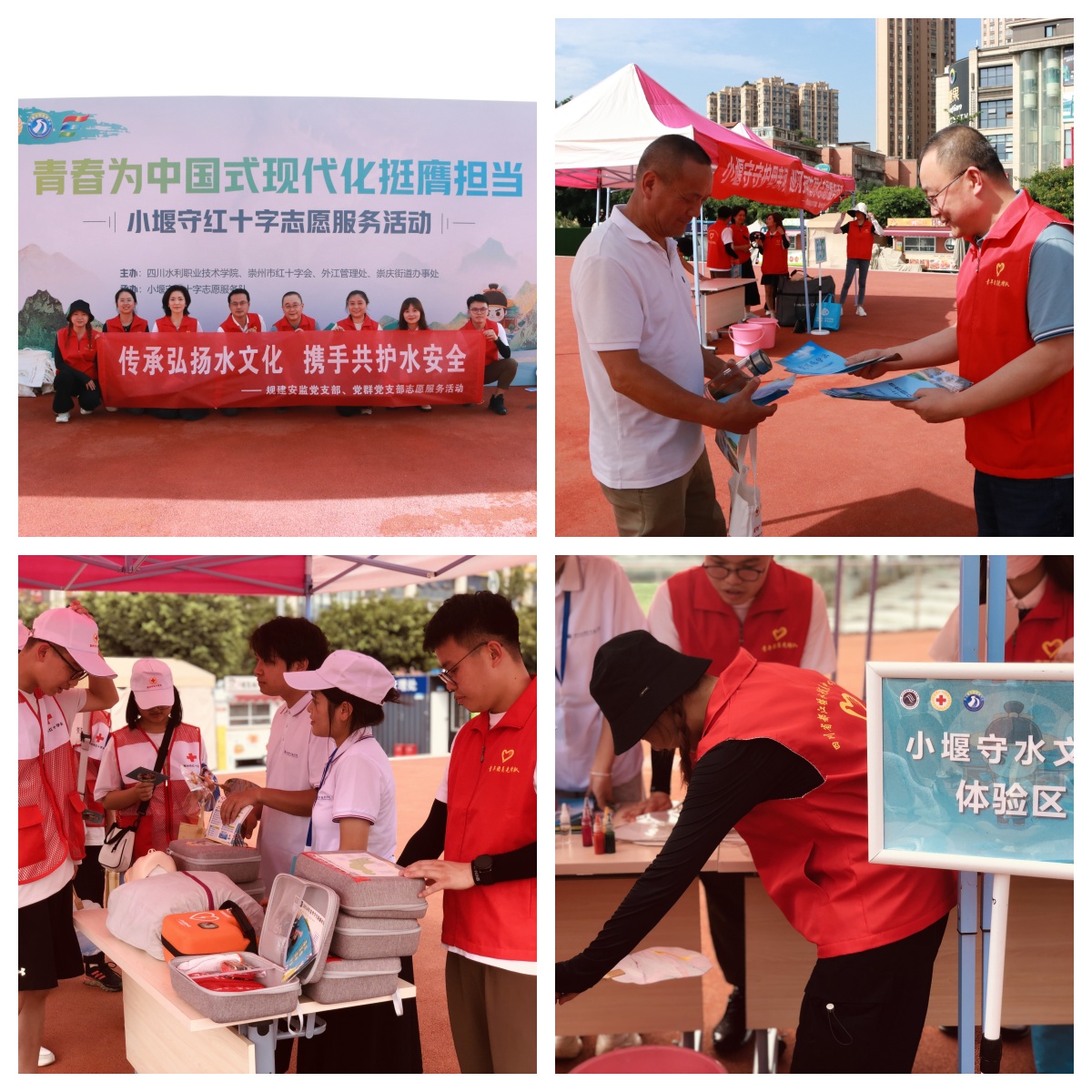 党的事业根基在基层,血脉在基层。为此,外江管理处全面推进基层党建工作提质增效,不断引领灌区管理创新增效。如何扛起责任担当,如何精准服务群众?在外江管理处党员干部看来,就要深入群众、服务群众。近日,外江管理处结合“七下八上”防汛关键期,联合四川水利职业技术学院、崇州市红十字会、崇州市崇庆街道办事处开展“青春为中国式现代化挺膺担当”志愿服务活动,向白碾社区居民宣传《节约用水条例》相关内容,普及防溺水安全知识,传授应急避险、自救施救等急救方法,进一步提高群众的安全生产观念,增强群众的安全防范意识,保障灌区安全形势持续向好的新局面。