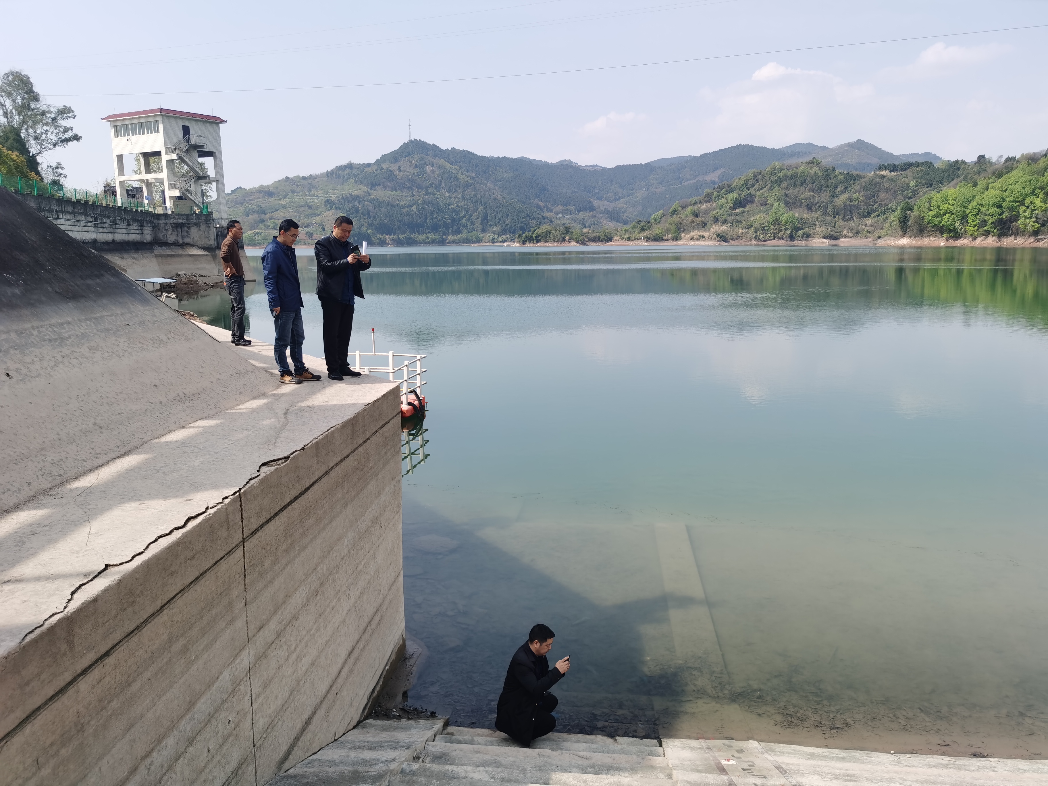 3月30日,都发中心供水处、管理处供水科、高明镇政府查看水库用水情况。