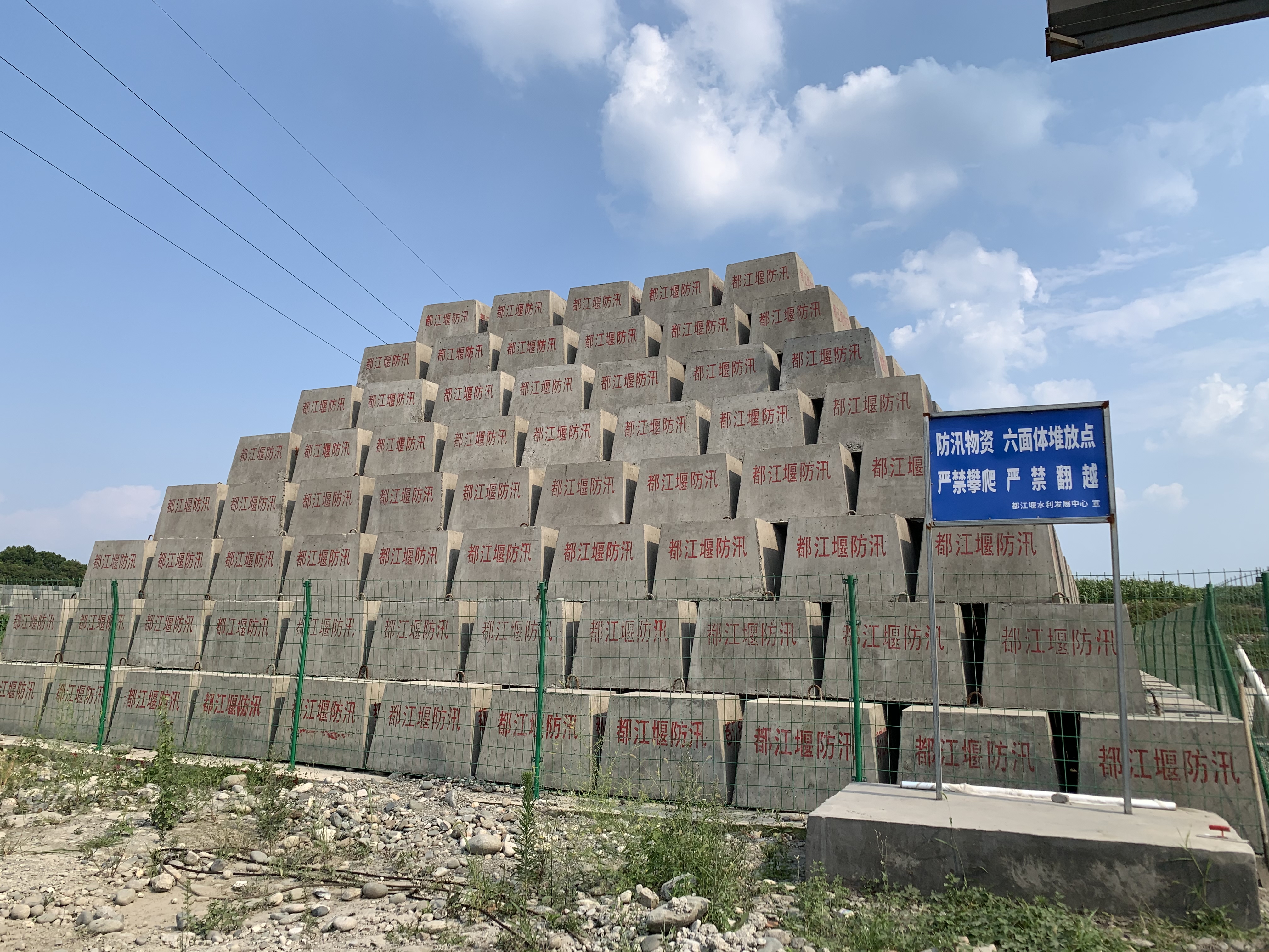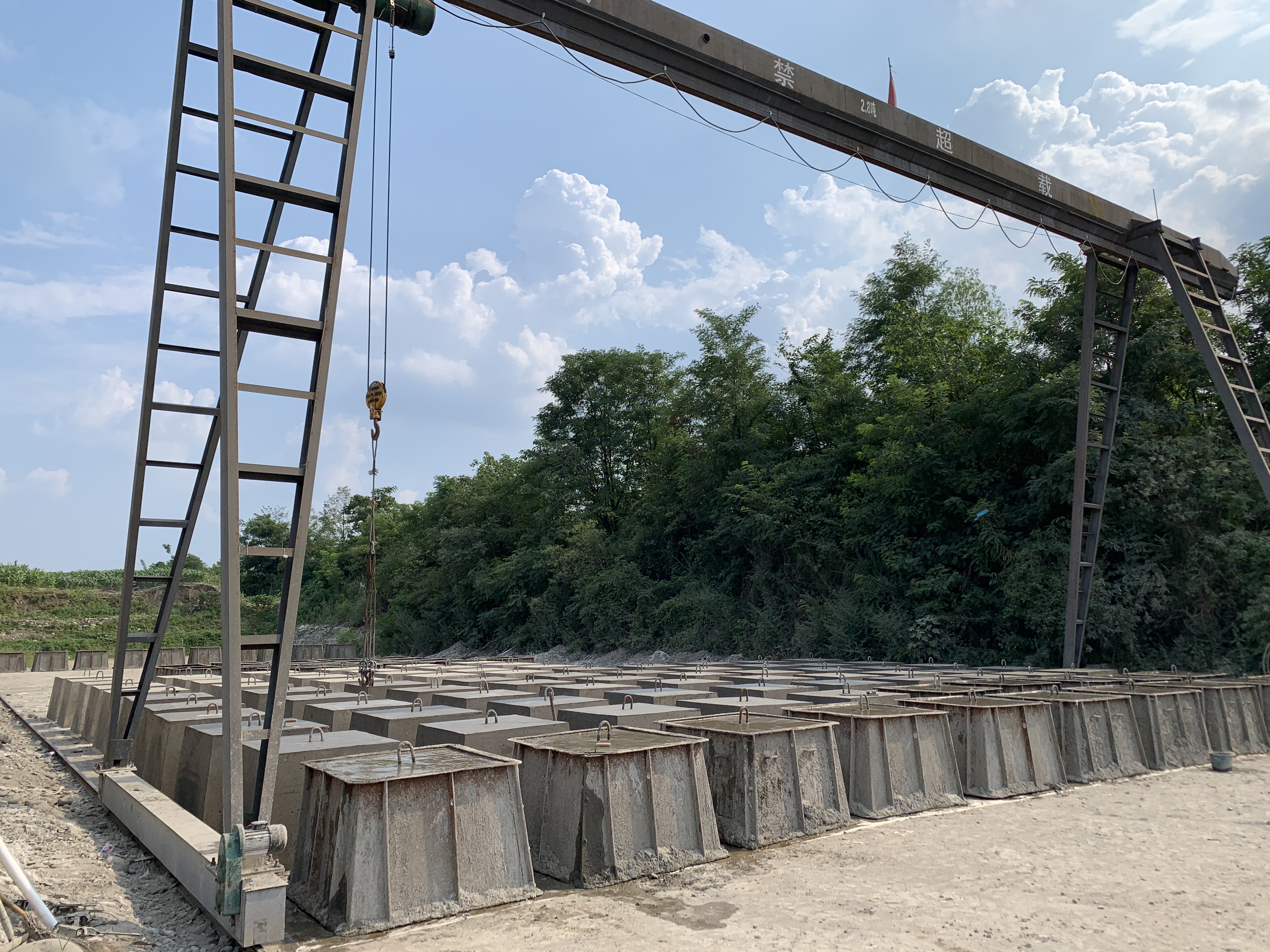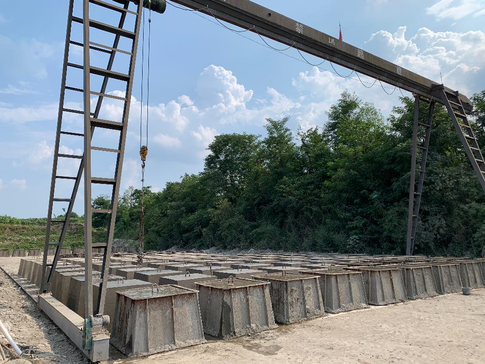 7月17日,防汛六面体浇筑现场情况。