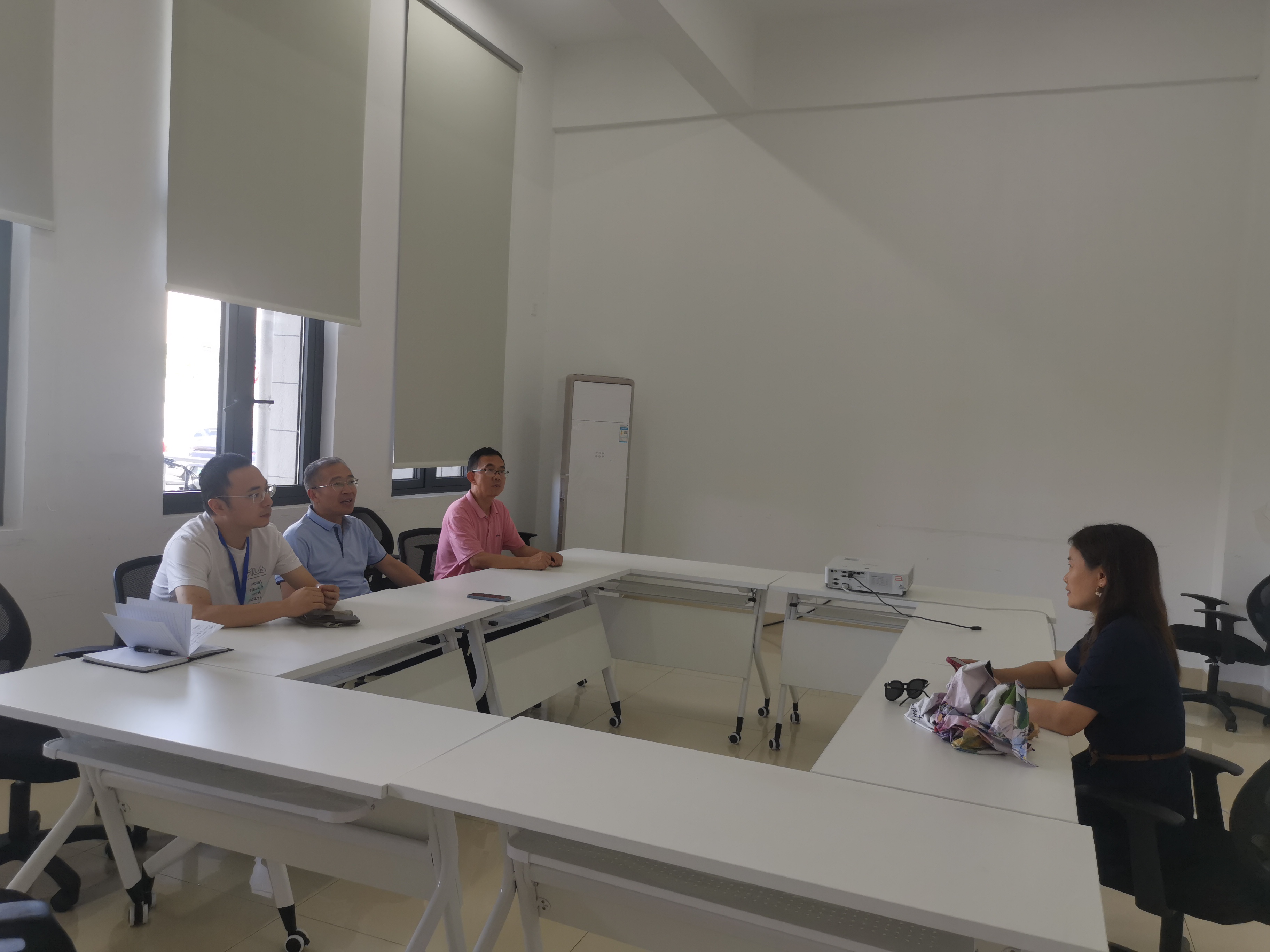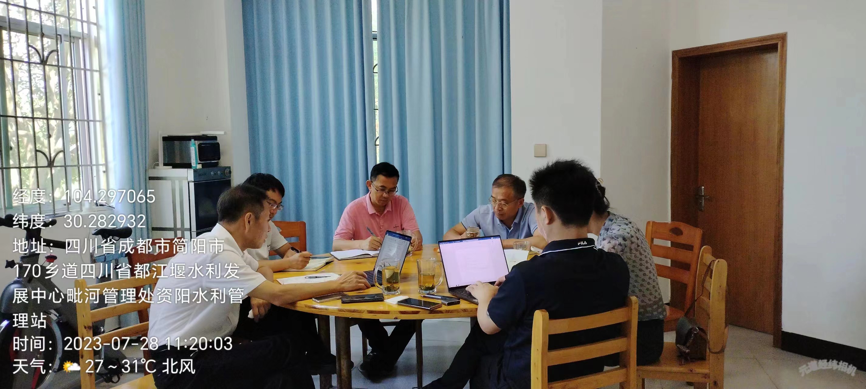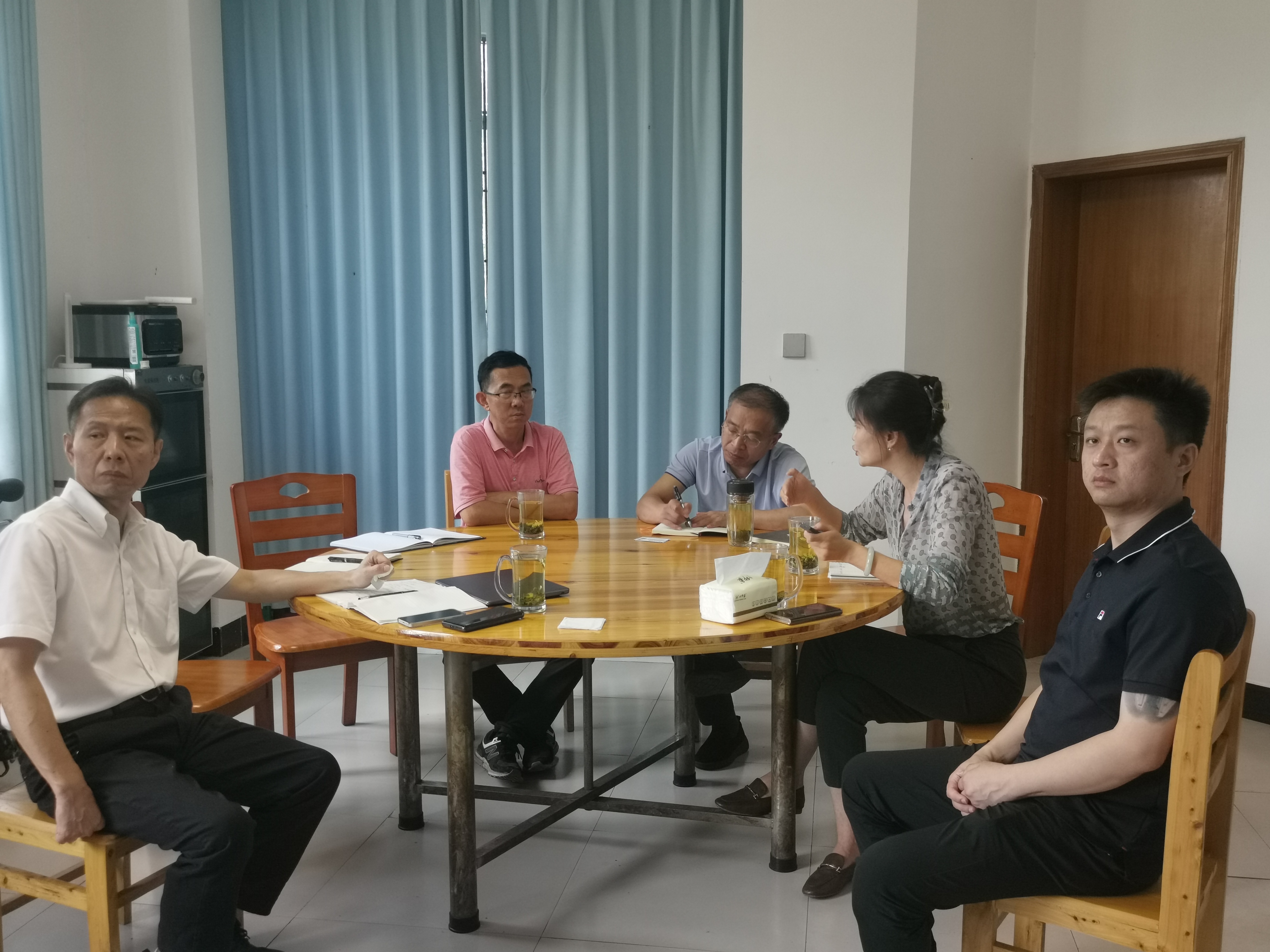 7月28日,张处长、供水科科长在资阳站与大禹节水股份有限公司西南地区负责人开展关于农业节水、农田水价综合改革座谈。