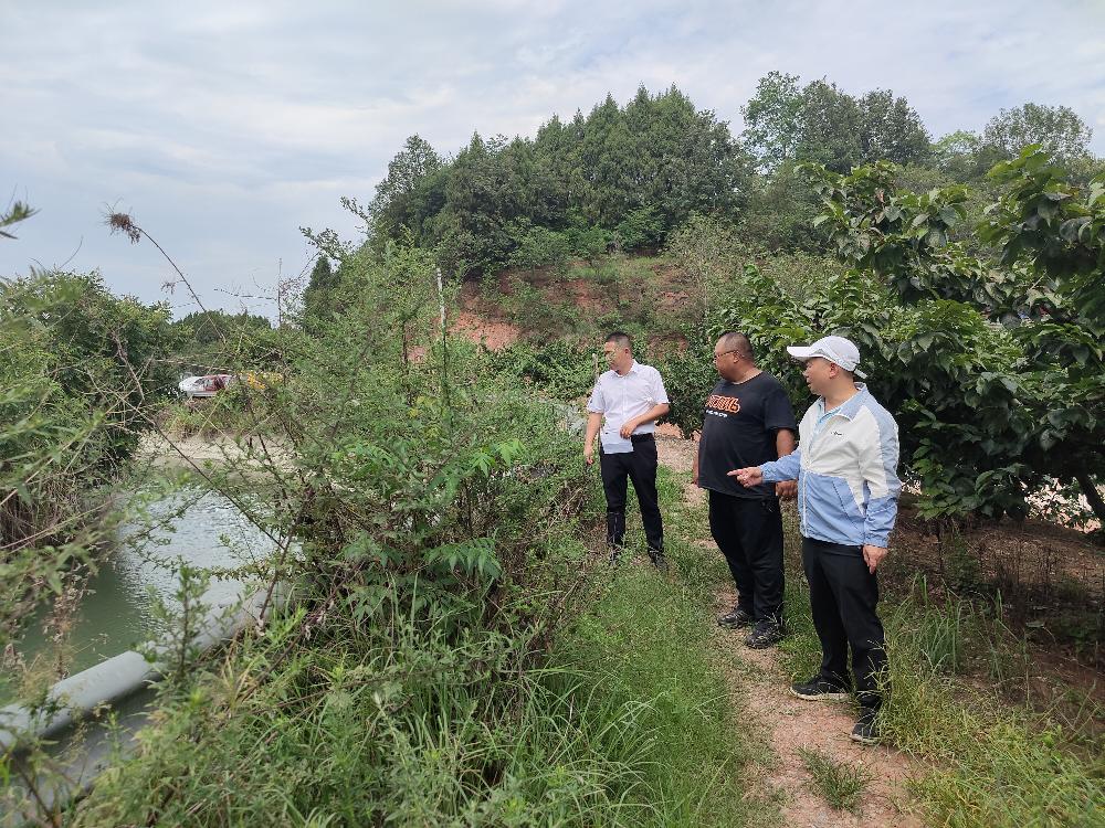7月31日,资阳水利管理站查看绛溪河水情,高南干渠输水情况,劝离绛溪河泄洪闸下方戏水群众。