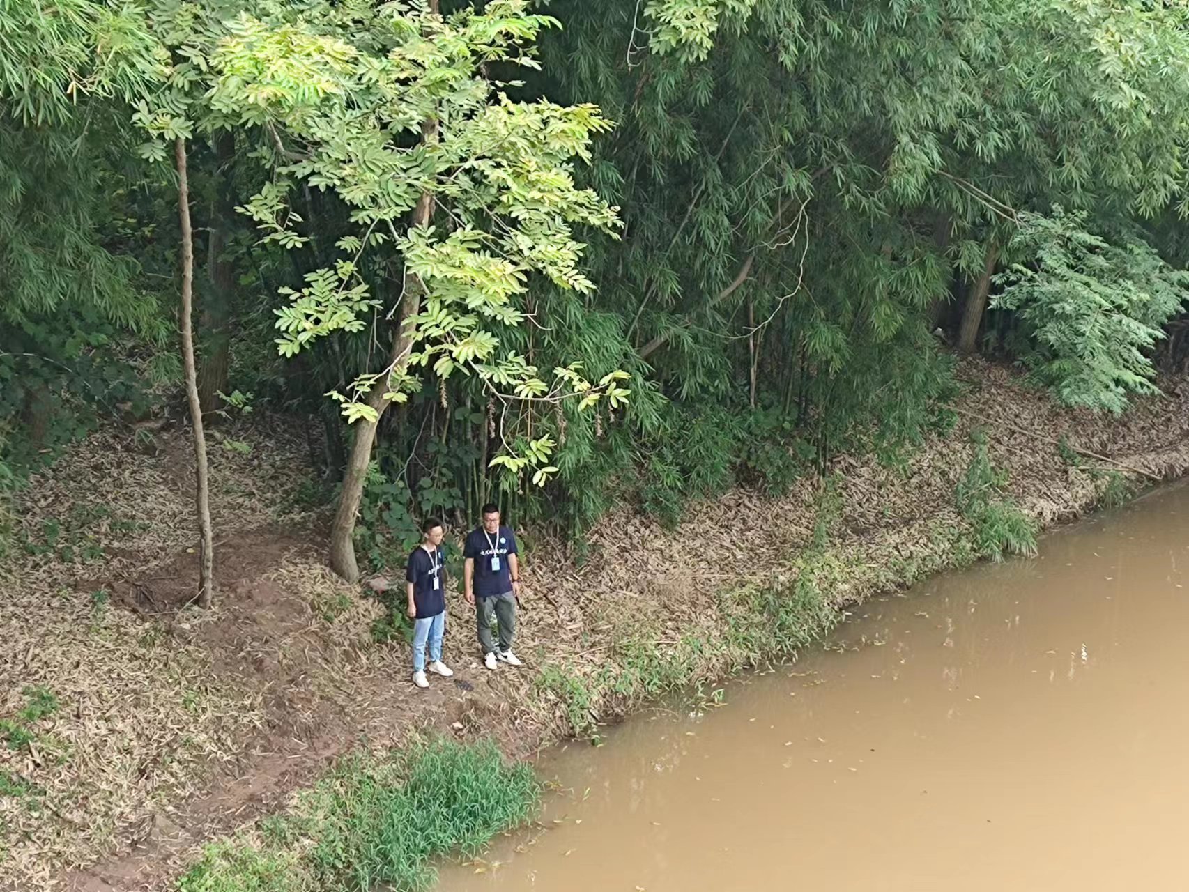 8月6日,资阳站查看绛溪河草池段生态补水情况。
