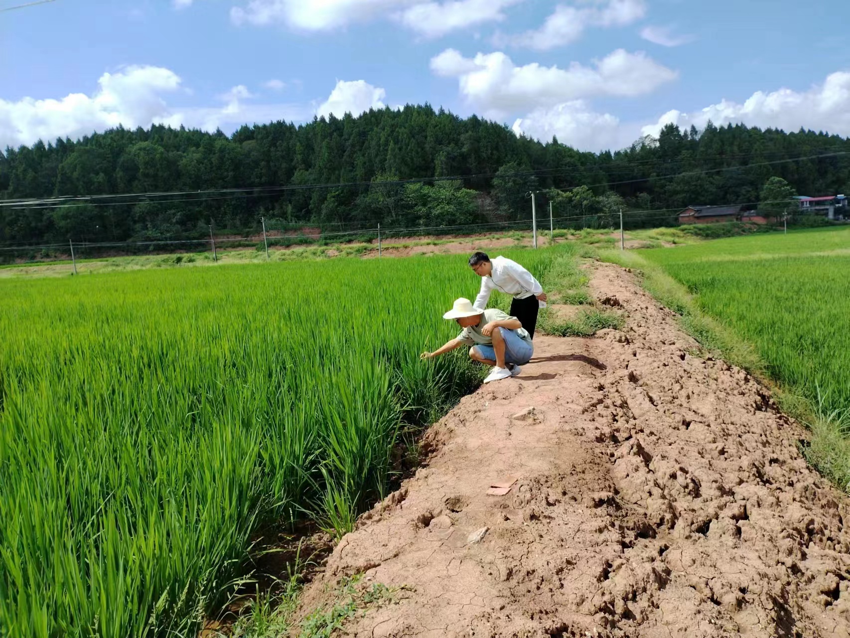 8月7日,资阳站查看董家梗镇付家坪村、小河村高农田、镇金镇小湾村宜机化改造田水稻生长情况。付家坪村小部分开始抽穗,小河村绝大部分水稻已经灌浆,长势较好。