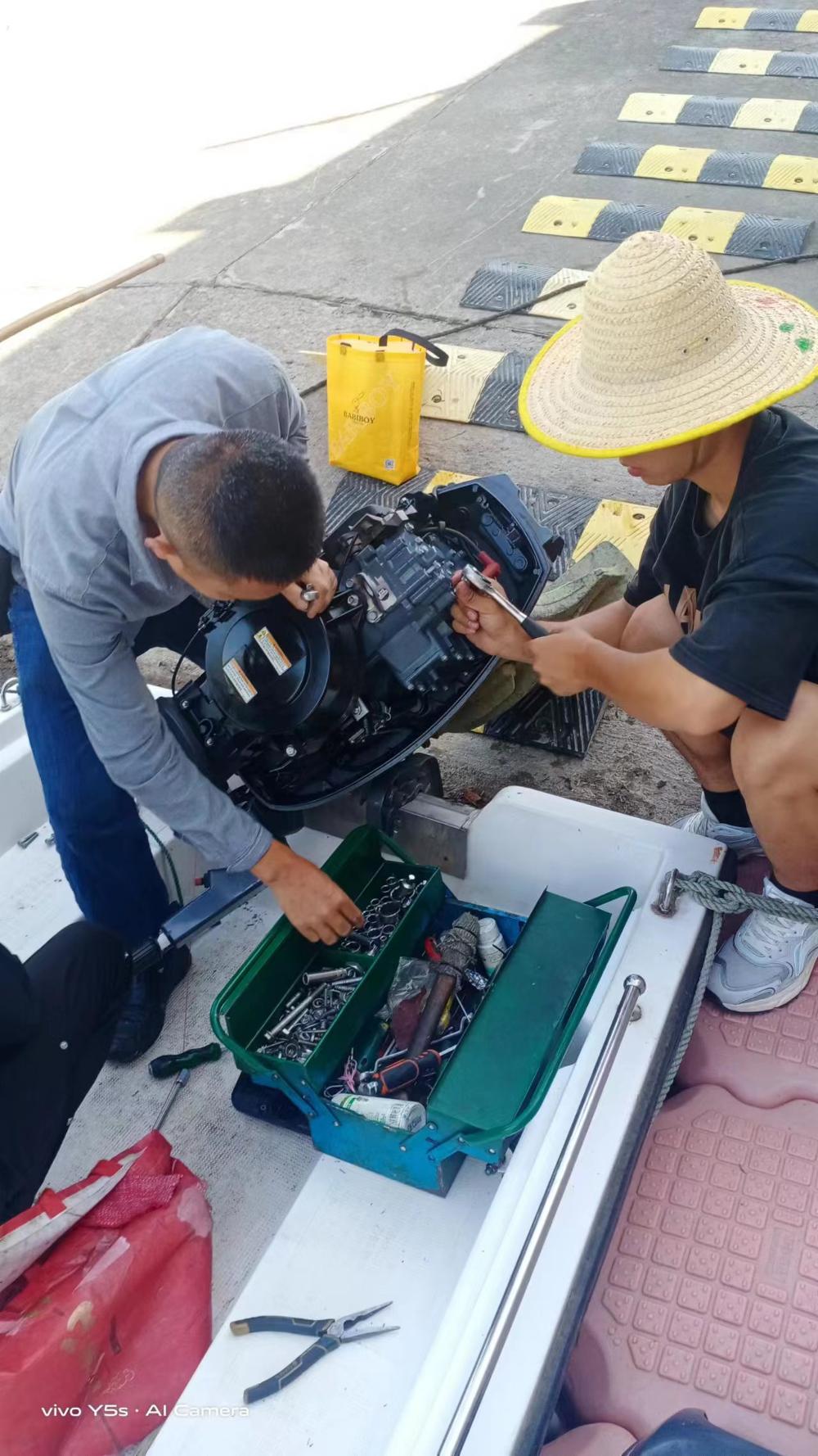 8月13日,东部新区水利管理站对现有船舶及发动机进行维修保养。