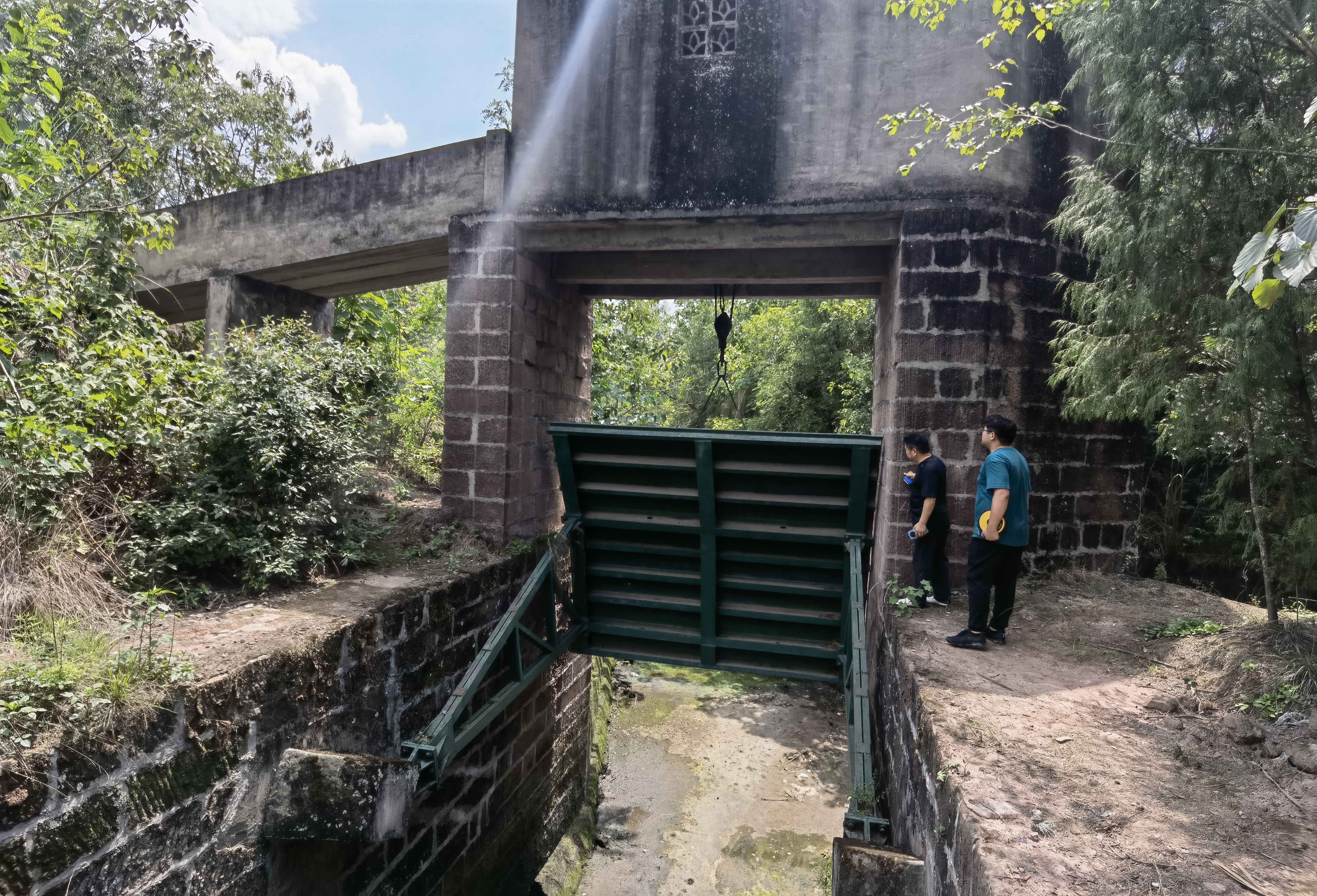 8月31日,资阳站会同金宝瓶公司查看南干渠夹夹沟节制闸、泄洪闸工程情况。