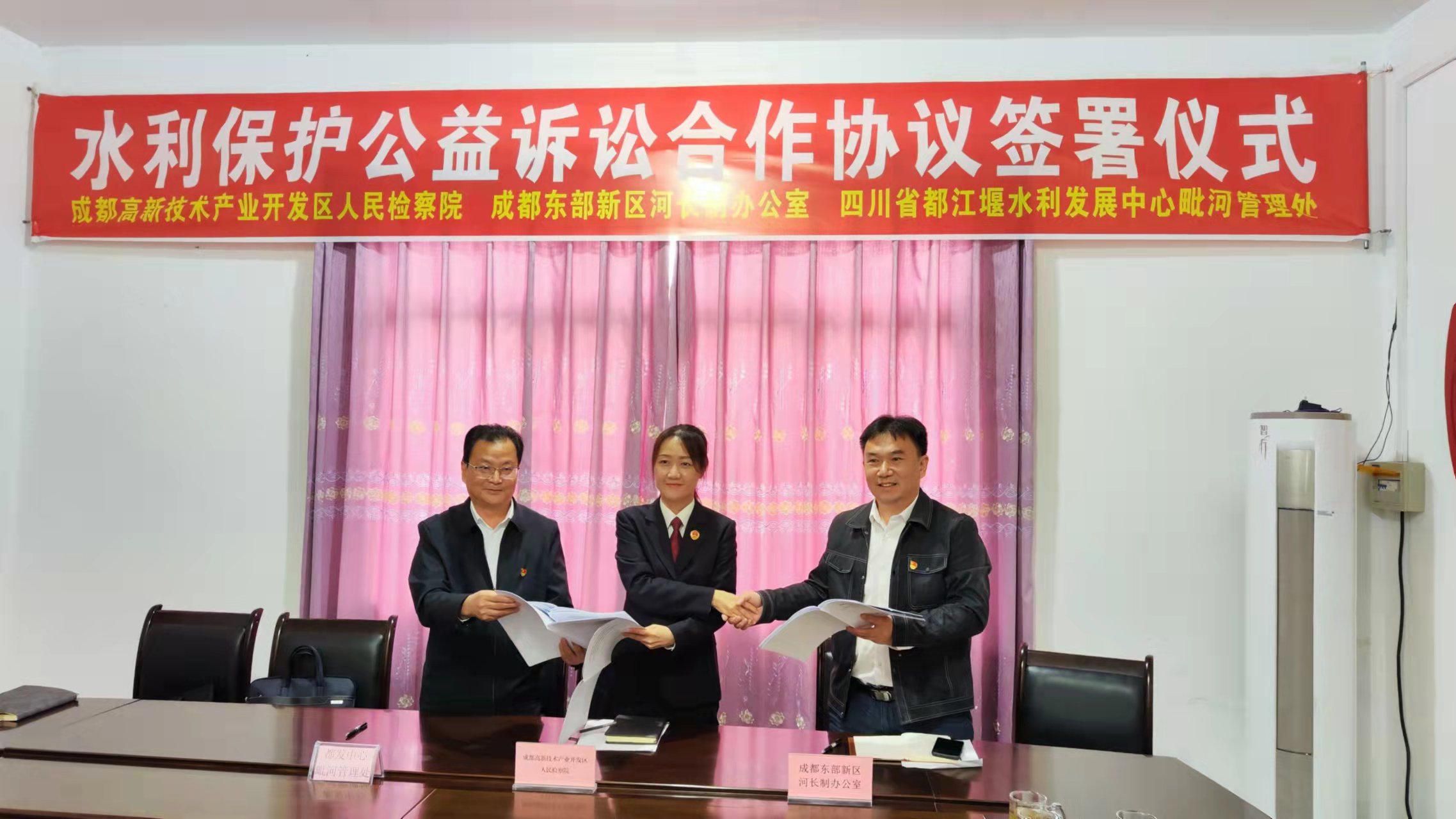 10月27日,毗河管理处、成都东部新区河长制办公室、成都高新技术产业开发区人民检察院举行水利保护公益诉讼合作协议签署仪式。