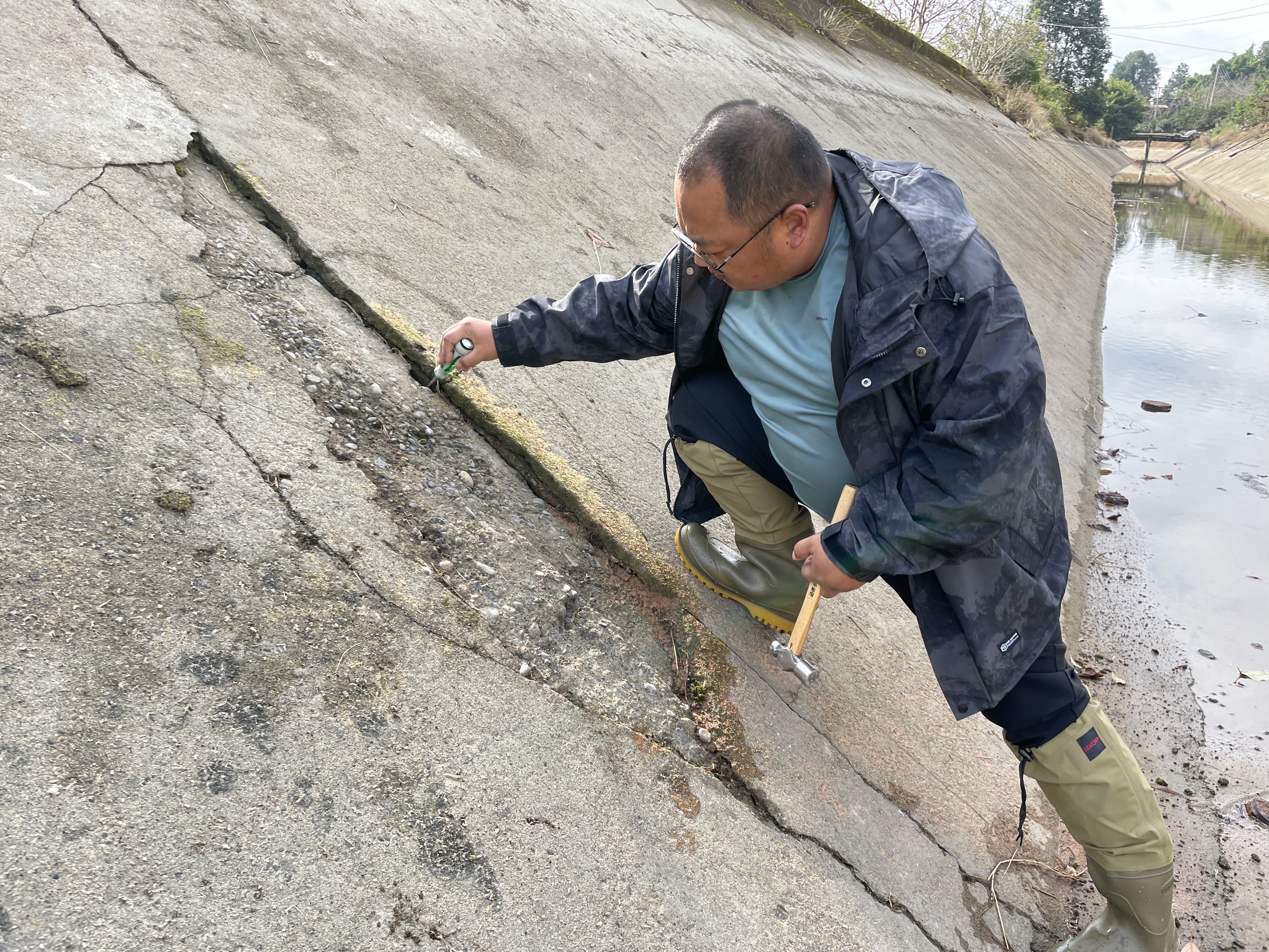 11月17日,刘处同工程科同志到新隧洞出口勘查消力池整治方案。