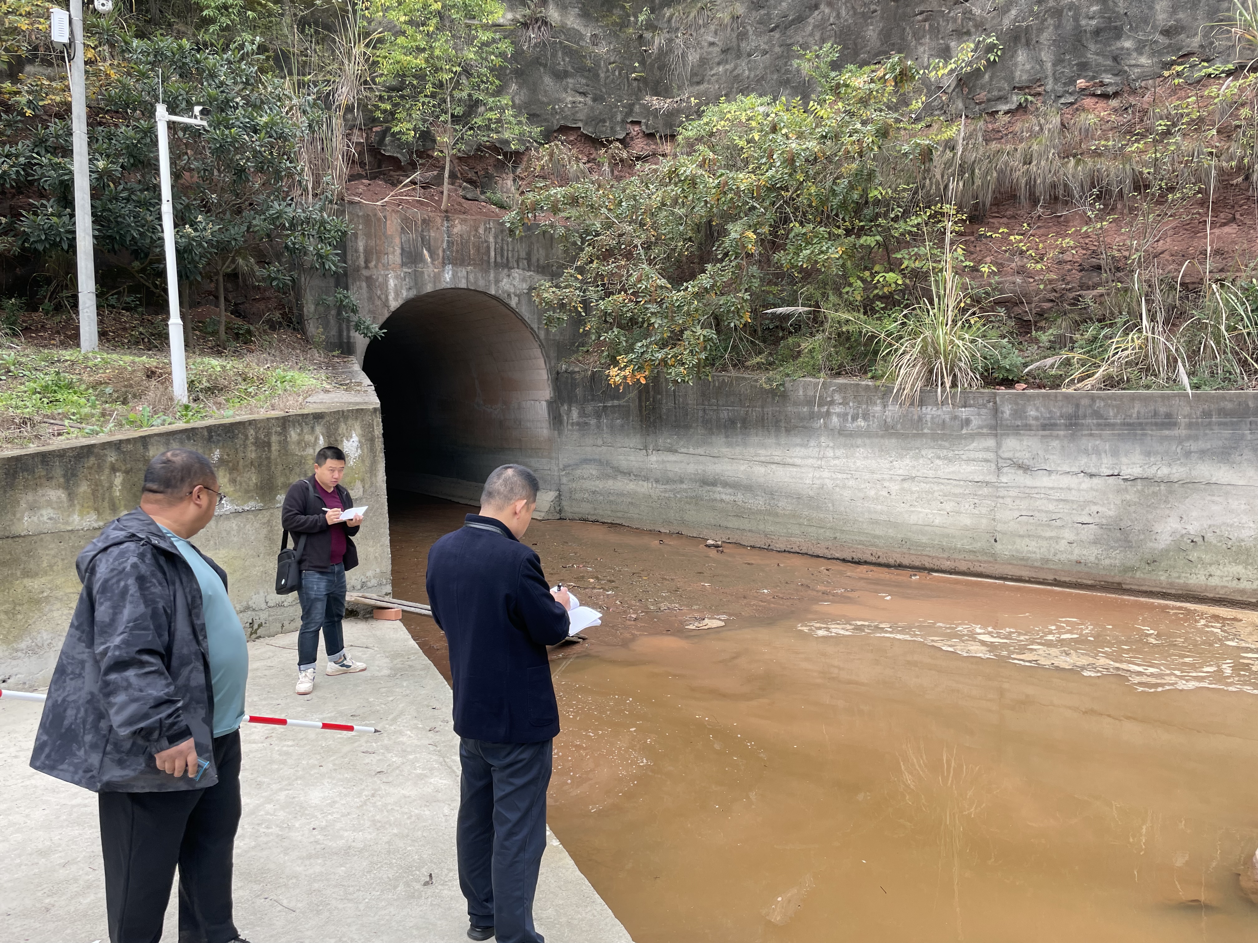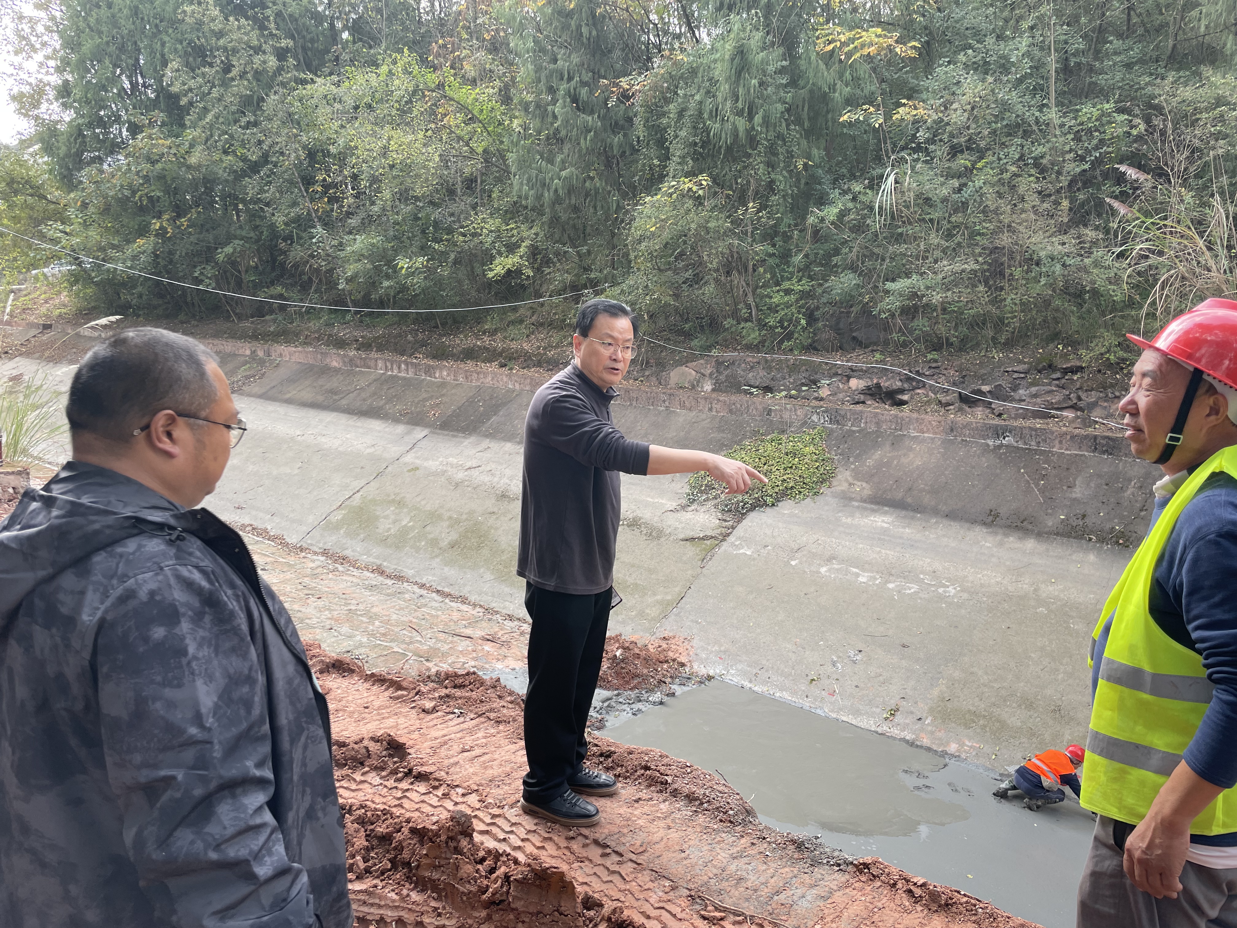 11月14日,东部新区水利管理站同工程科进一步勘查龙泉山隧洞1+600位置附近工程现状,查看张家岩河入库口消力池施工,及商讨新隧洞出口后期整治方案。