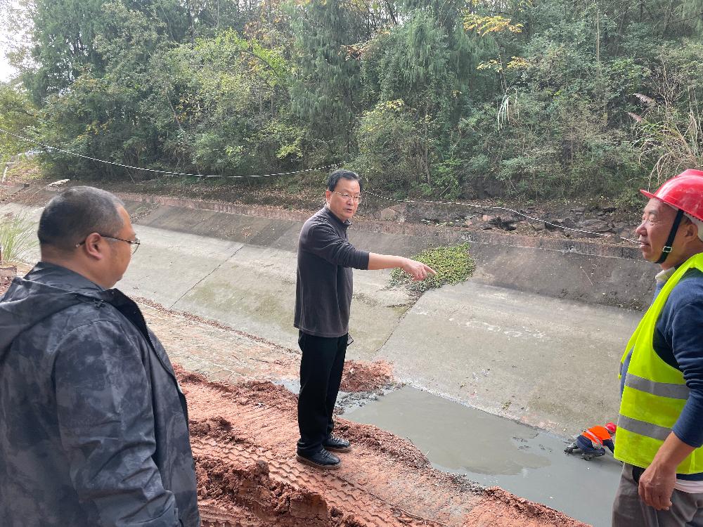 11月15日,刘处到东部新区水利管理站督导各点位施工情况,分别就锥形阀操作、和平支渠位置挡水板恢复及水沟分水、辛家桥位置工程善后、燃灯寺泄洪通道施工、张寺嘴段补烂及桥梁施工安排、9+400段施工工艺及渡槽修复单位相关安全责任书签署等问题,提出明确要求。