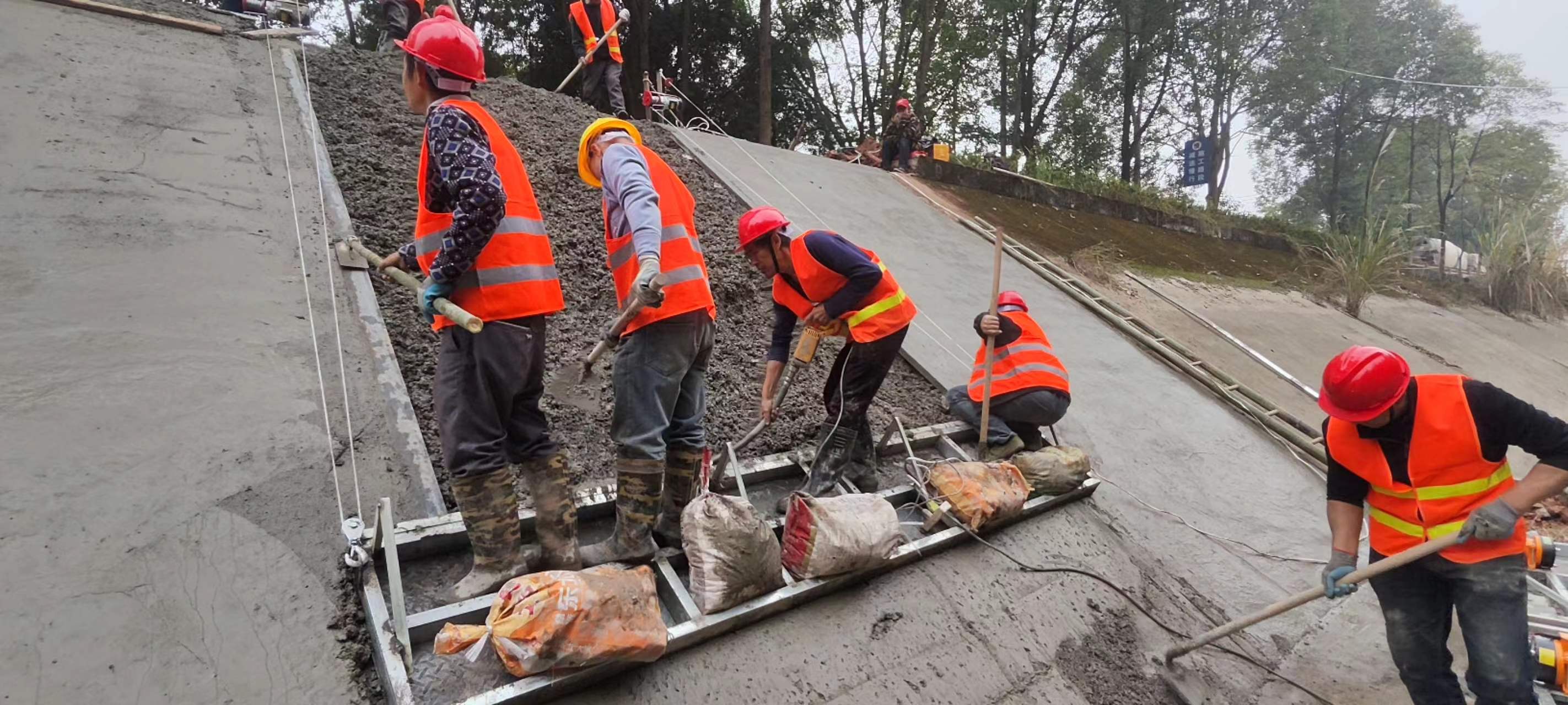 11月21日,充南干渠9+400位置正在浇筑左岸护坡。