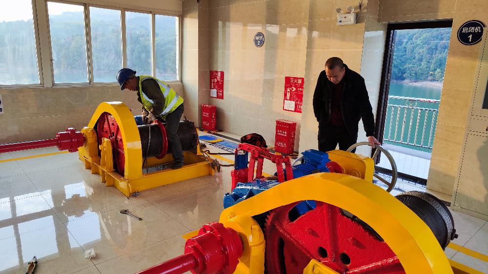 11月22日,水库泄洪闸更换钢丝绳,要求做好安全防护,预留好钢丝绳安全圈数,安装完成后计划试机。